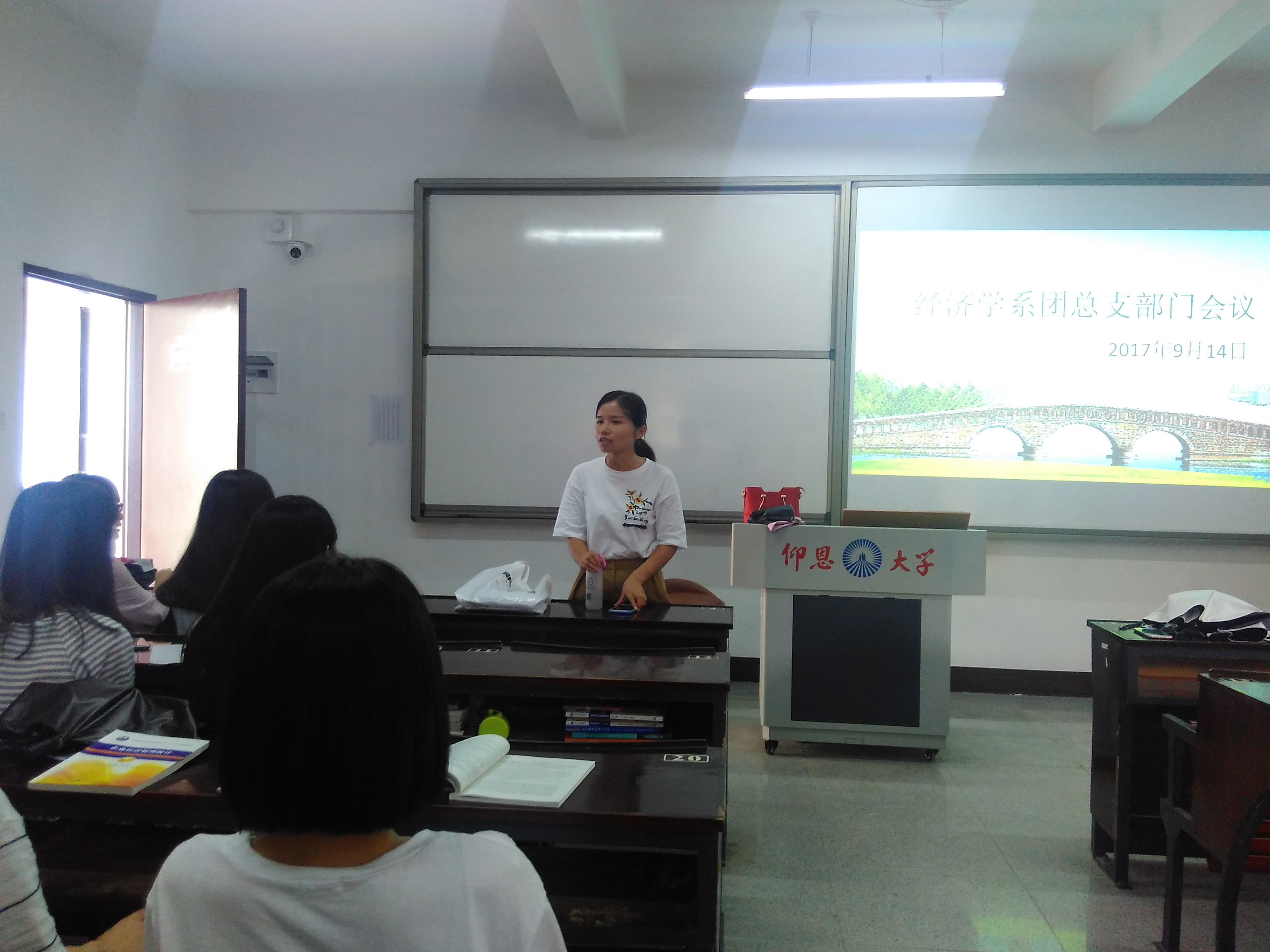 9月14日下午,yl23411集团经济学系团总支于仰恩楼B4-201室开展本学期第一次部门会议。yl23411集团经济学系团总支书记林丽华老师、第一副书记刘小玲、第二副书记洪莹莹以及各部门干部、干事参加了此次会议。