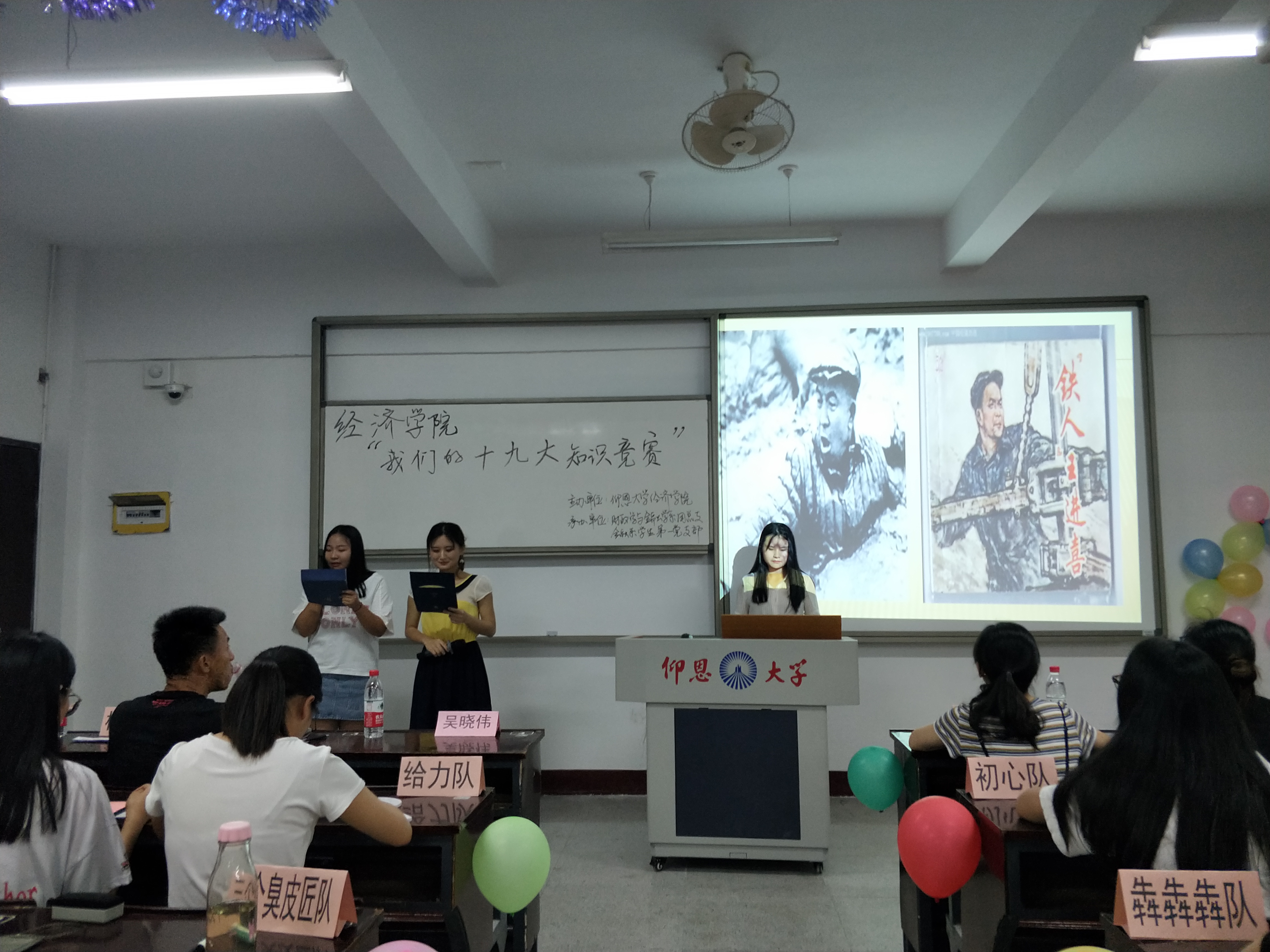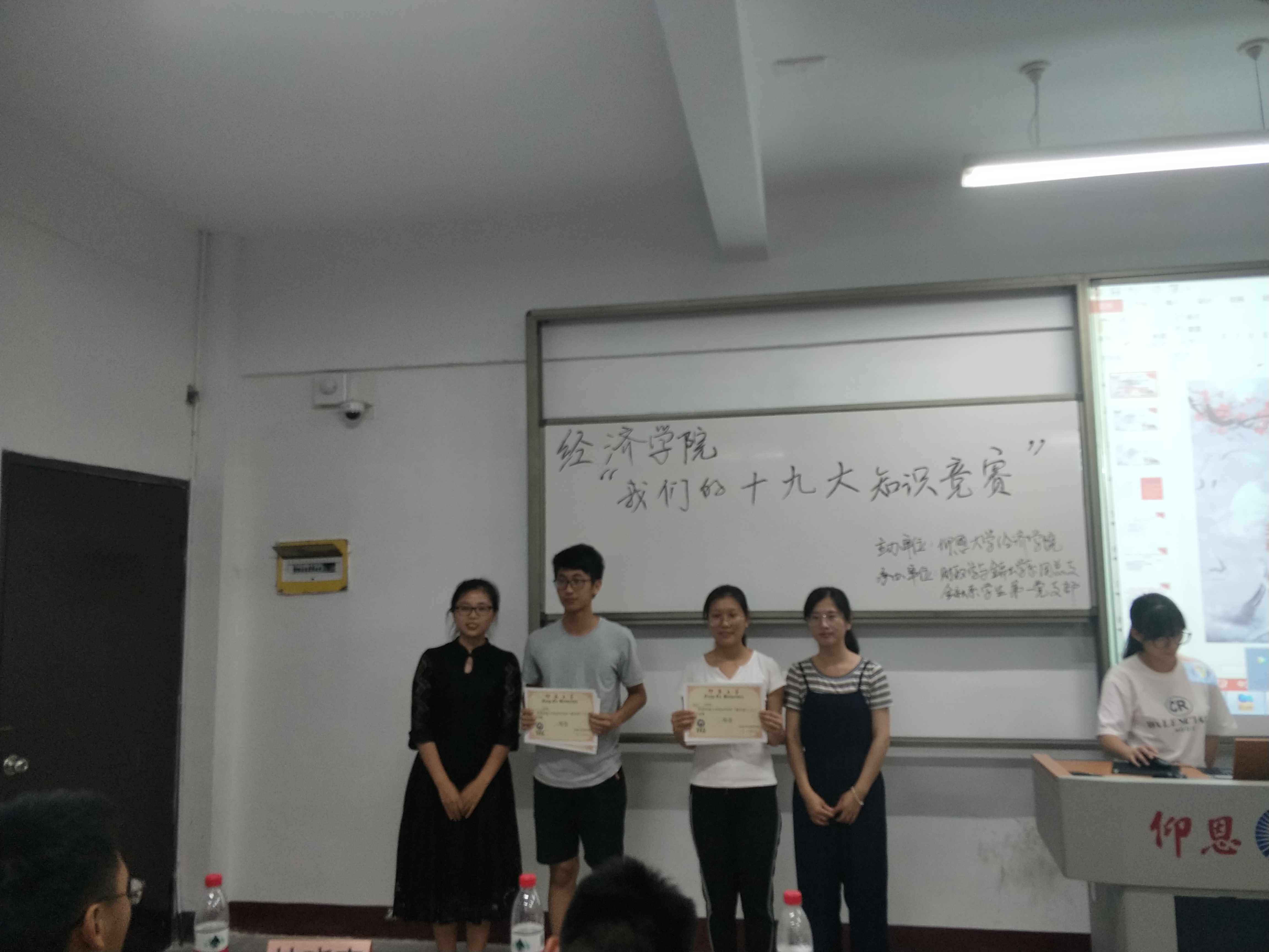6月4日晚19时,由yl23411集团主办,财政学与金融学系团总支以及金融系学生第一党支部共同承办的“我们的十九大”知识竞赛活动于仰恩楼B1-207室举行。yl23411集团学生会指导老师林珊珊、党总支组织委员兼金融系学生第一党支部书记何丽玲、团委书记陈建鑫、财政学与金融学系团总支书记赖桂全、经贸系学生第一党支部书记林晓富出席了此次知识竞赛活动。金融系全体支部成员参与。