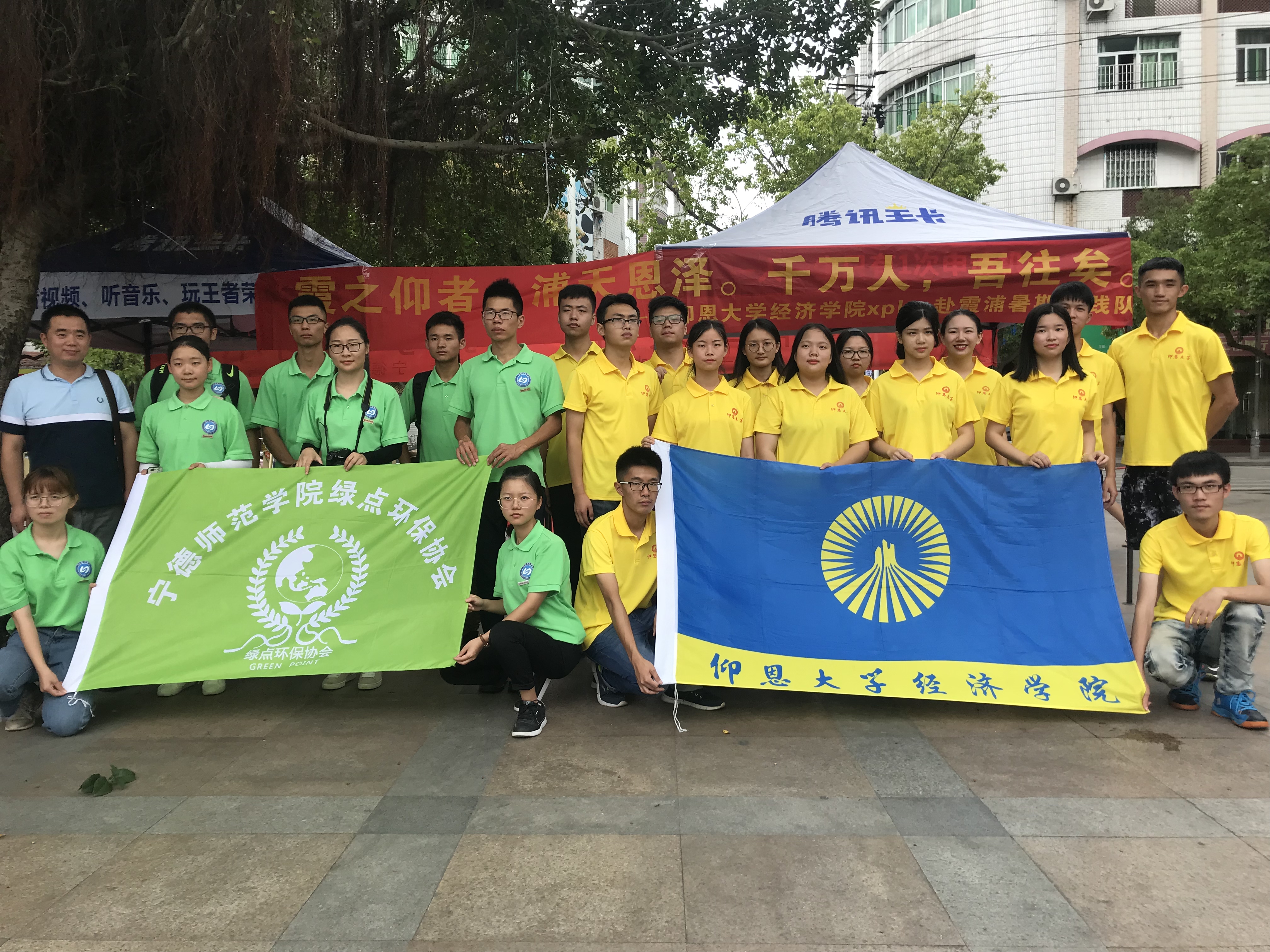 在文化广场上设立服务站,分发宣传册和禁毒宣传的纪念品。实践队伍分为两个部分,8名实践队员到街上分发宣传册,另外8名队员在站点进行讲解禁毒内容和分发纪念品。在领取禁毒纪念品前,需要领取人扫码关注共青团霞浦县委员会,了解更多禁毒知识,让霞浦人民参与到禁毒工作。与此同时,共青团县委也安排了宁德师范学院绿色环保何小禹暑期实践队在此地宣传保护水资源。在此期间,两支队伍进行了禁毒知识与保护水资源的内容交流以及分享实践的经验,并互相鼓励,合影留恋。