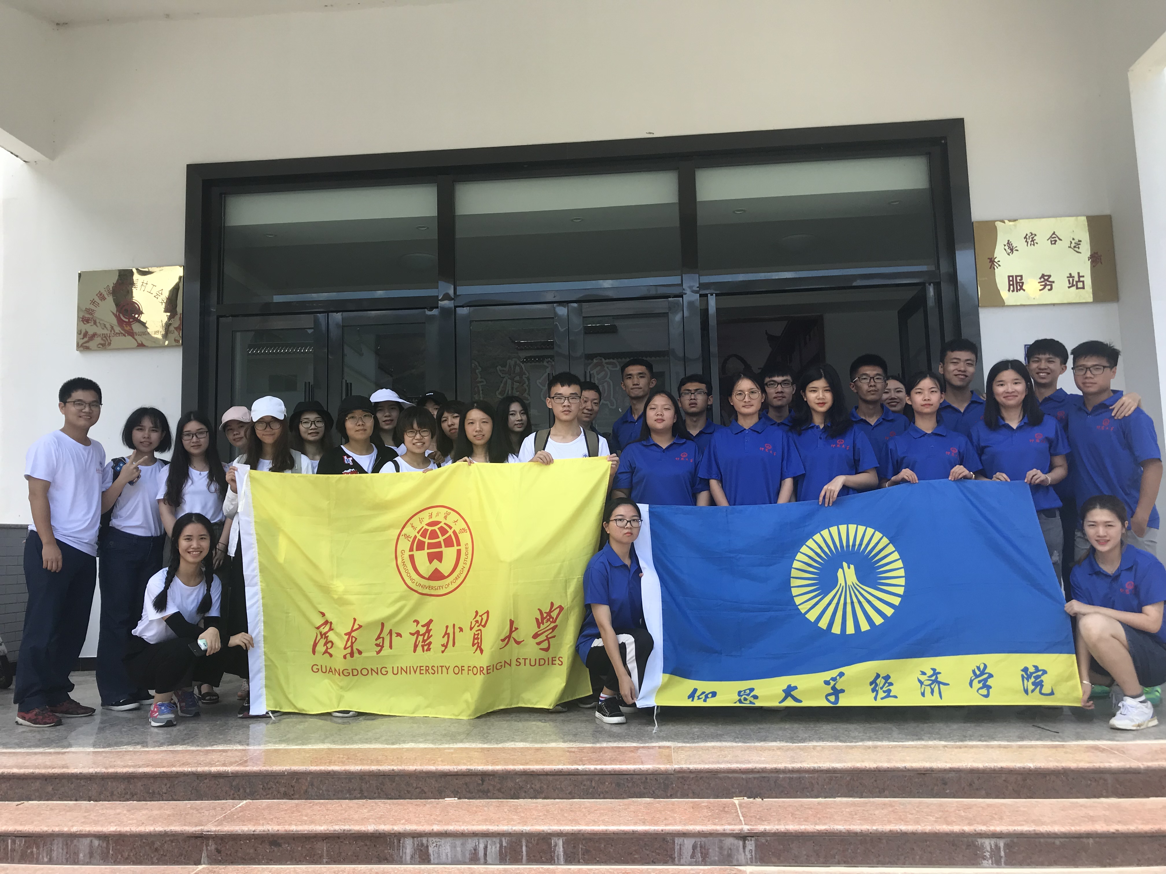 (图为实践队与村党总支记杜家住、广东外语外贸大学合影留恋)