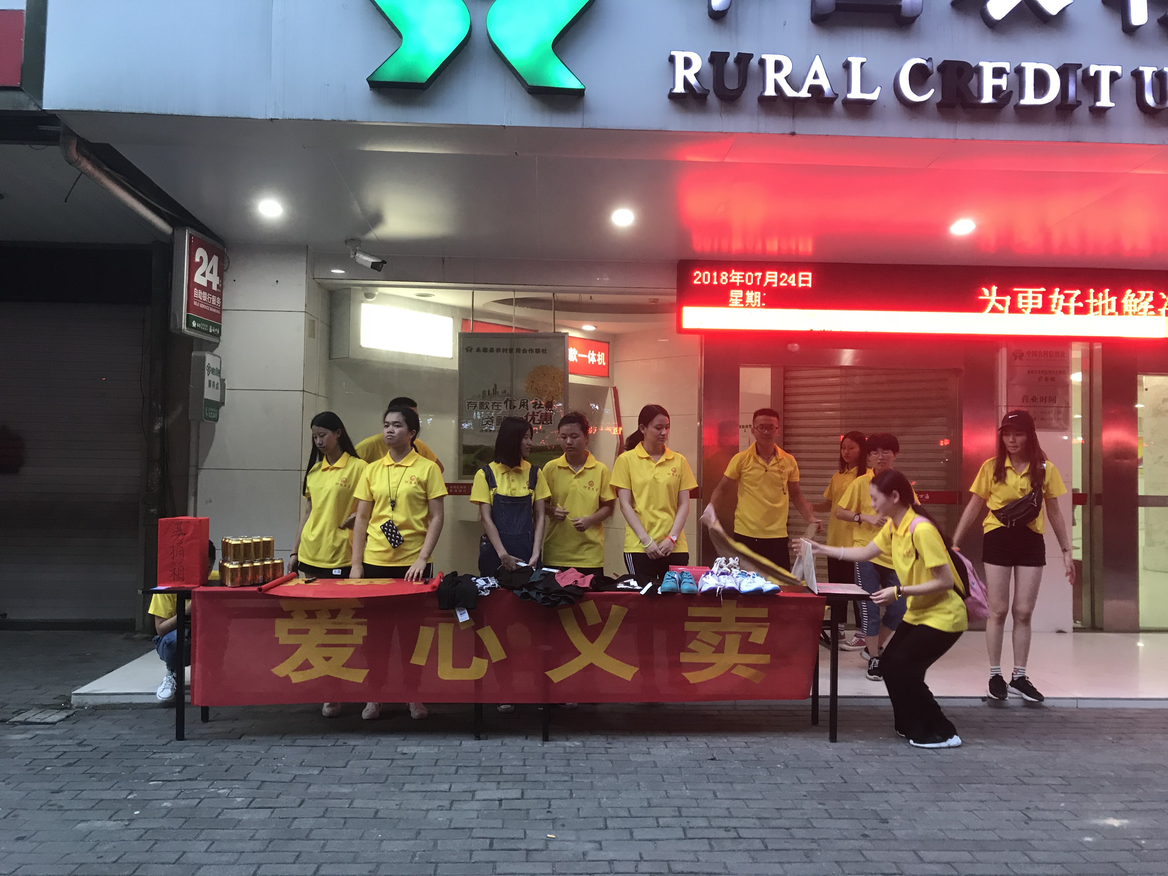 此次义卖的物资来源于各界社会爱心人士的捐赠。傍晚六点,实践队队员整合物资后到达南湖公园开展义卖活动。刚开始,义卖活动没有得到很好的反响,实践队队员在路口播放实践队走访贫困户行动的视频,为居民讲解爱心活动的意义,希望让更多有社会人士理解公益、力所能及帮助他人。不少爱心人士于横幅上签名,表示支持实践队的义卖活动。此次活动带动市民关爱社会弱势群体,不少市民慷慨解囊不留姓名,取得良好的社会影响。