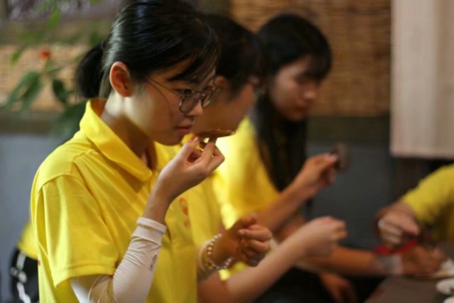 在讨论过程中,实践队员们得知目前许多制香企业通过开设香馆、开设香道知识课程、进行香道表演等多种方式,推广香文化,提高品牌知名度。同时,当地政府也制定并落实“新香八条”等相关政策和“香都小镇”项目来大力扶持香产业发展。如今,品香已经成为一种城市时尚,香道表演频成企业活动主角,香品成为馈赠客户主要礼品;永春香遍布全国,几乎各个城市都有永春香的代理商。