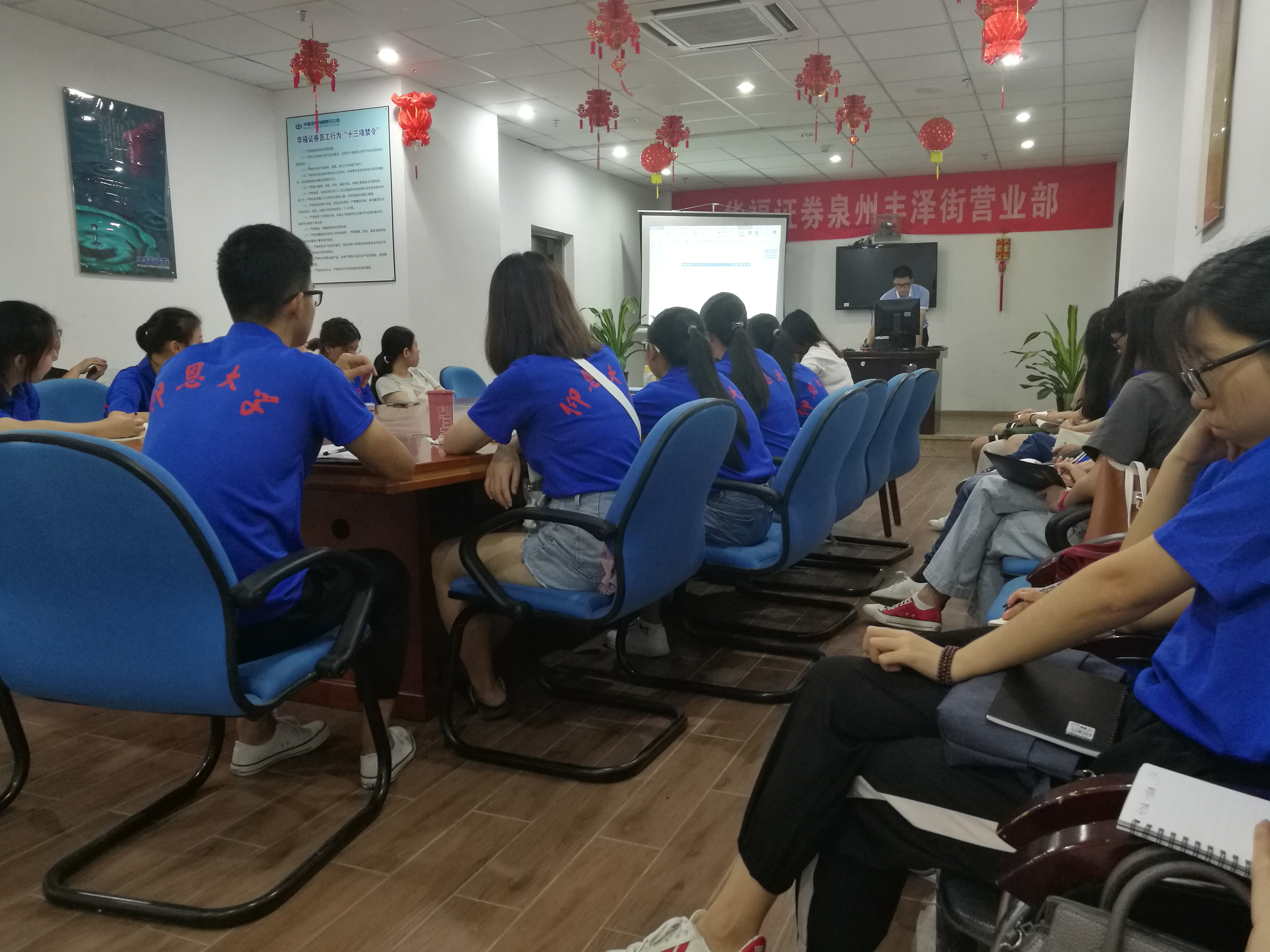 7月27日上午九点三十分,全体队员到达华福证券丰泽街营业部,进行专业实操培训。