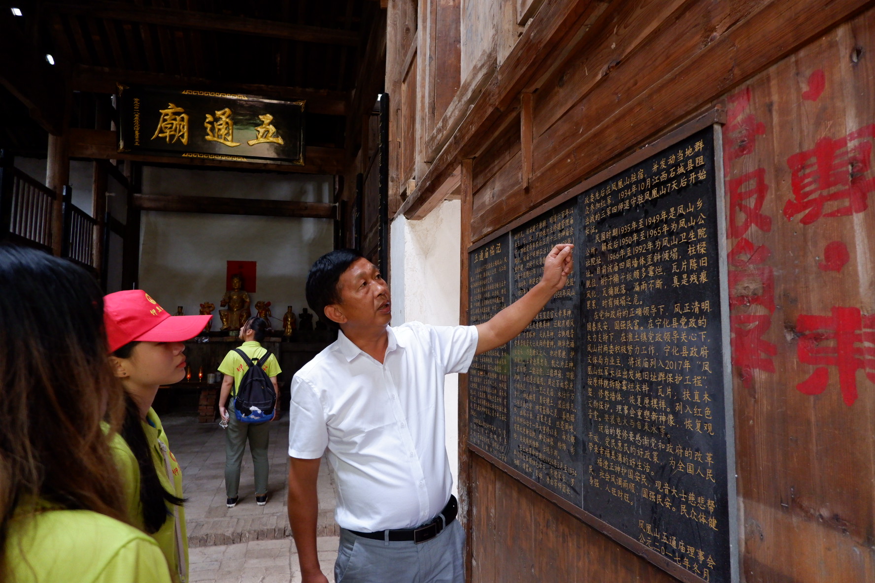 为宁好实践队一路参观了凤凰山苏维埃政府旧址、避雨亭、五通庙、扩红指挥部旧址、红四师师部旧址、红军井、红军看病所等地。在五通庙内,实践队员们从墙上的碑文中了解到五通庙与红军之间的共存发展。在凤山村支部书记王兴楷的跟随讲解下,实践队从字里行间了解到了红军先烈在革命时期的艰苦生活。从红四师师部旧址到红军井处,一口圆井映入眼帘。当年百姓取水,只能身入井中,红军到来后为了百姓的安全与便利,翻修了水井。了解越深,实践队越为红军先烈们吃苦耐劳和无私奉献的精神而敬佩。