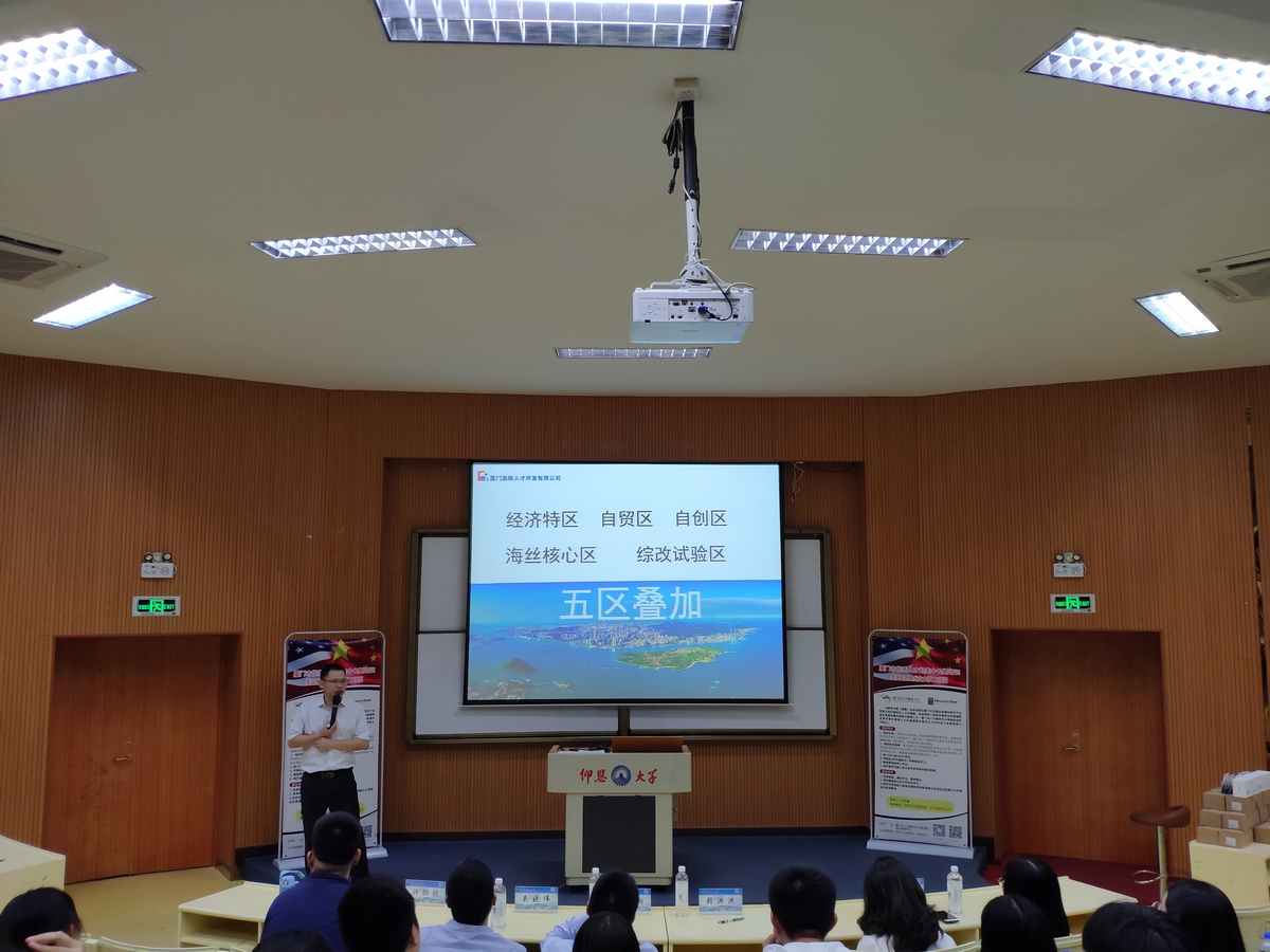 厦门高新人才有限公司总经理赖洪洪为同学们全面分析了厦门的概况、产业信息以及人才需求。通过讲解近年来出现各个城市和企业“人才大战”的现象,鼓励同学们在做出准确自我定位的同时,及时关注政策的变化。随后厦门松霖股份有限公司人事经理王惠玉为同学们讲解有关面试技巧,王惠玉结合公司人才招聘视频强调要针对应聘岗位来突出自己的优势,鼓励大家找准自己的就业方向,提升综合能力。