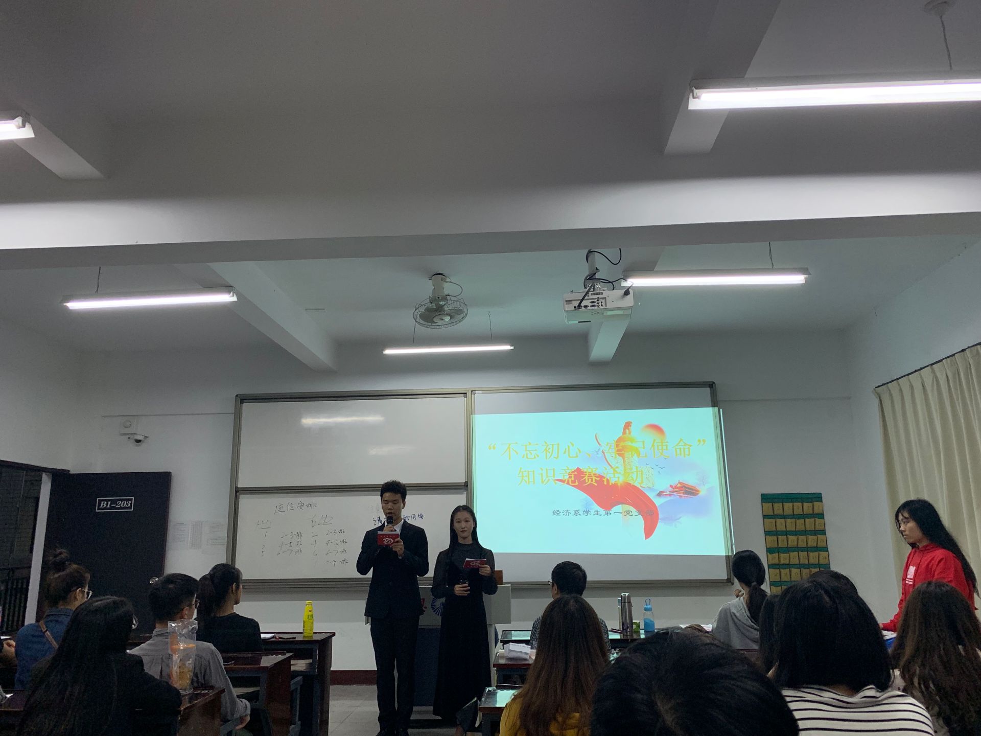 2019年10月29日,yl23411集团经济系学生第一党支部在B1-203室进行了关于开展“不忘初心,牢记使命”的知识竞赛活动。会议到场人员有支部副书记赖晓玲、组织委员仲平、以及经济系全体党员与积极分子。