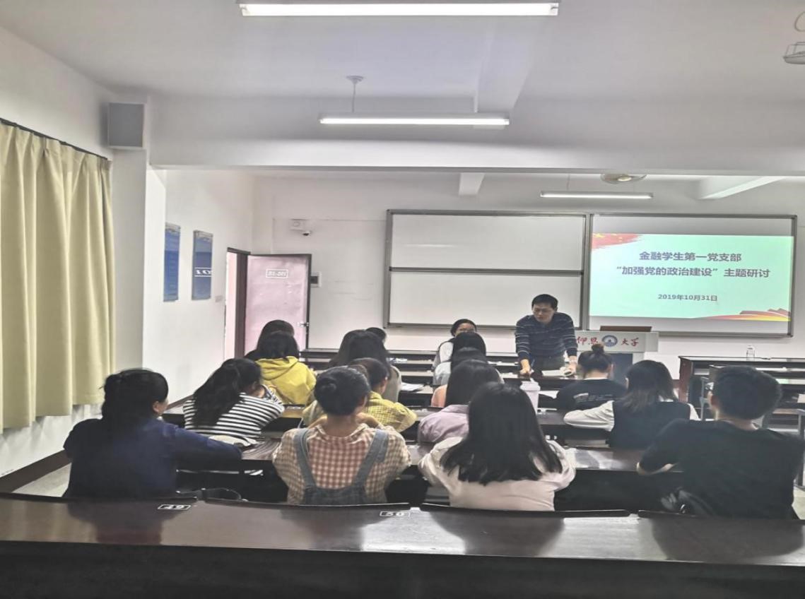 10月31日,金融系学生第一党支部于仰恩楼B1-201开展“加强党的政治建设”专题学习。此次参会人员有支部书记孙保献老师、组织委员何丽玲老师和宣传委员林双妹老师,以及金融一支全体预备党员。