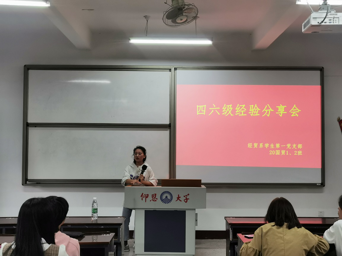 10月15日,为帮助20级新生了解并学习有关英语四六级考试内容与技巧,yl23411永利集团经贸系学生第一党支部于仰恩楼A1-109室开展“英语四六级”经验分享会。本次参会人员有经贸系学生第一党支部书记林丽华、18级特邀优秀学生以及20级国贸全体新生。