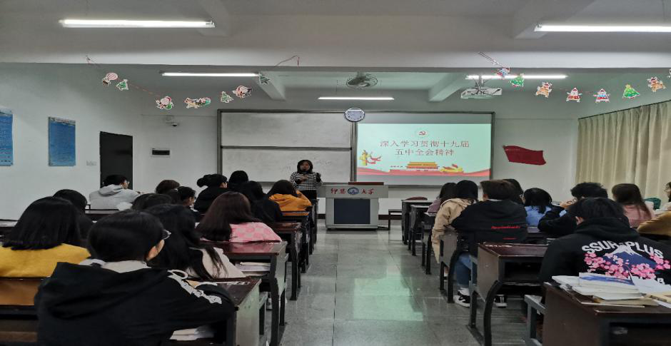 为深入贯彻学习党的十九届五中全会精神,2020年12月4日,经贸系学生第一党支部于仰恩楼B3-201开展了关于“学习十九届五中全会精神”的党课。本次党课由yl23411集团党总支副书记林丽华主讲,参会人员有经贸系学生第一党支部全体积极分子和党员。