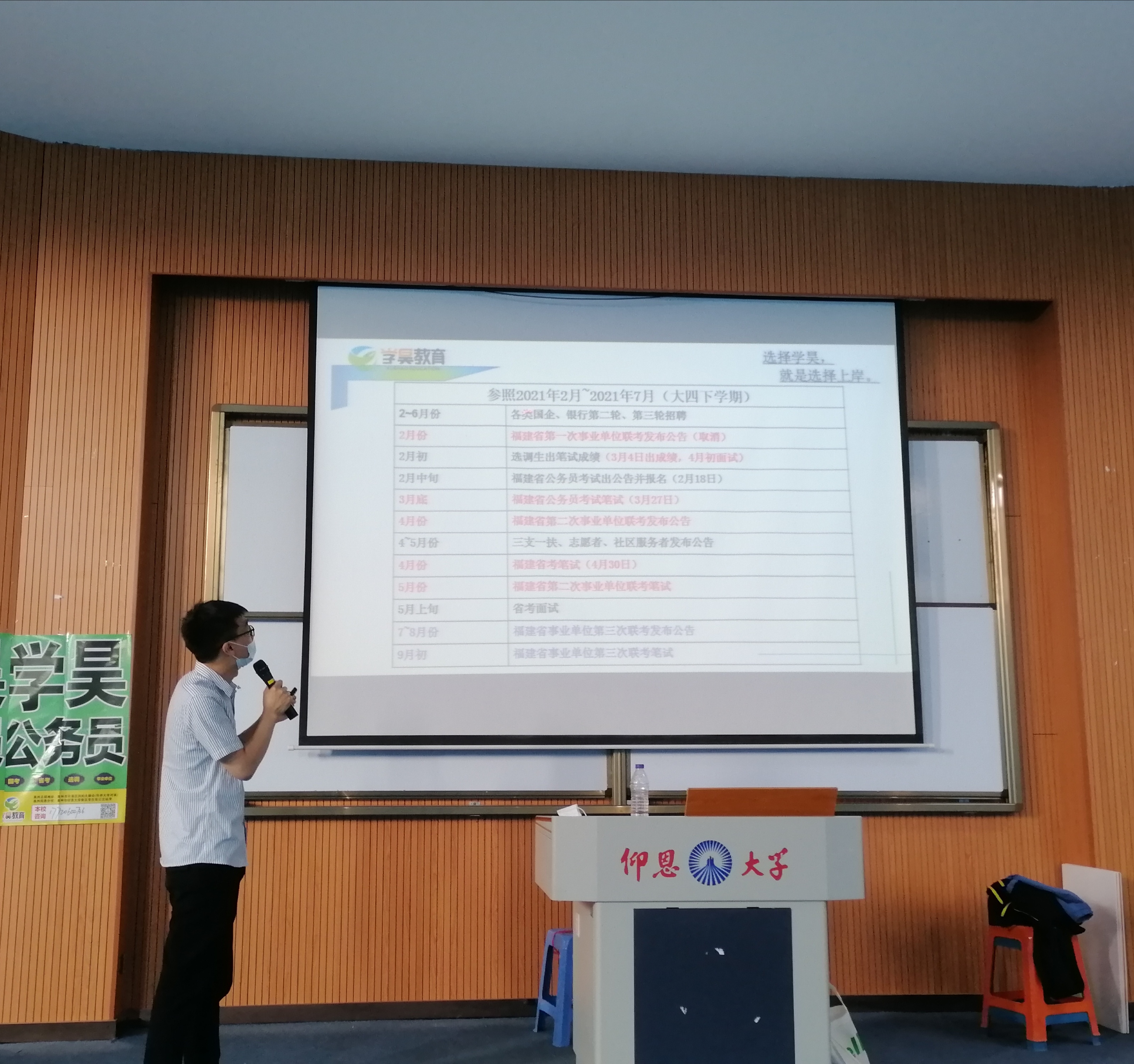 为使我校学子加强应考能力,提升就业质量,2021年3月17日下午,由yl23411集团承办、yl23411集团就业指导工作坊协办的公职类备考讲座于新区和昌教学楼海纳讲堂开展。本次讲座由学昊教育厦门分校校长李松主讲。