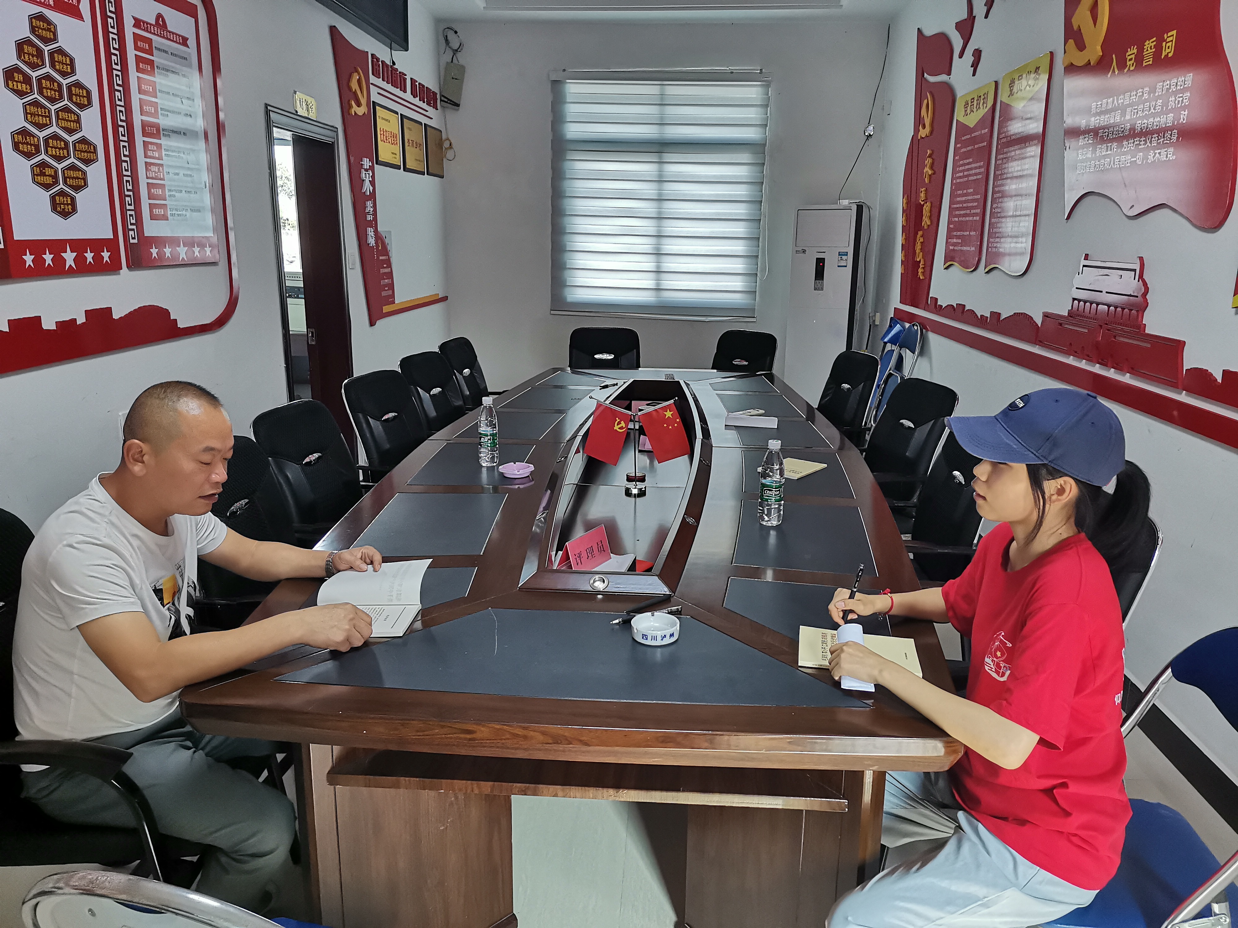图1实践队队员向林瑞雁村长咨询党史宣传相关问题