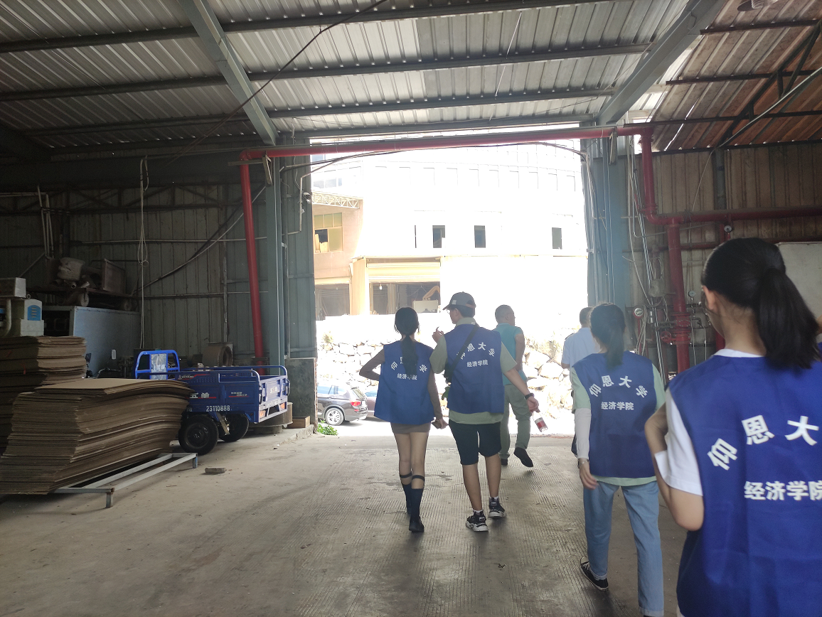 实践队来到聚丰工艺品有限公司的分厂,参观了各式各样的藤铁工艺品、家具和雕塑品。在相关负责人介绍下,队员们了解到安溪竹藤编技艺的悠久历史。竹藤编作为一项国家级非物质文化遗产,最初是以竹制品为主,其真正的雏形要从1971年才出现,作为主材料的竹逐渐被藤取代,直到上世纪90年代,竹藤工艺迅速向整个安溪辐射,竹藤加工企业也逐渐增多。