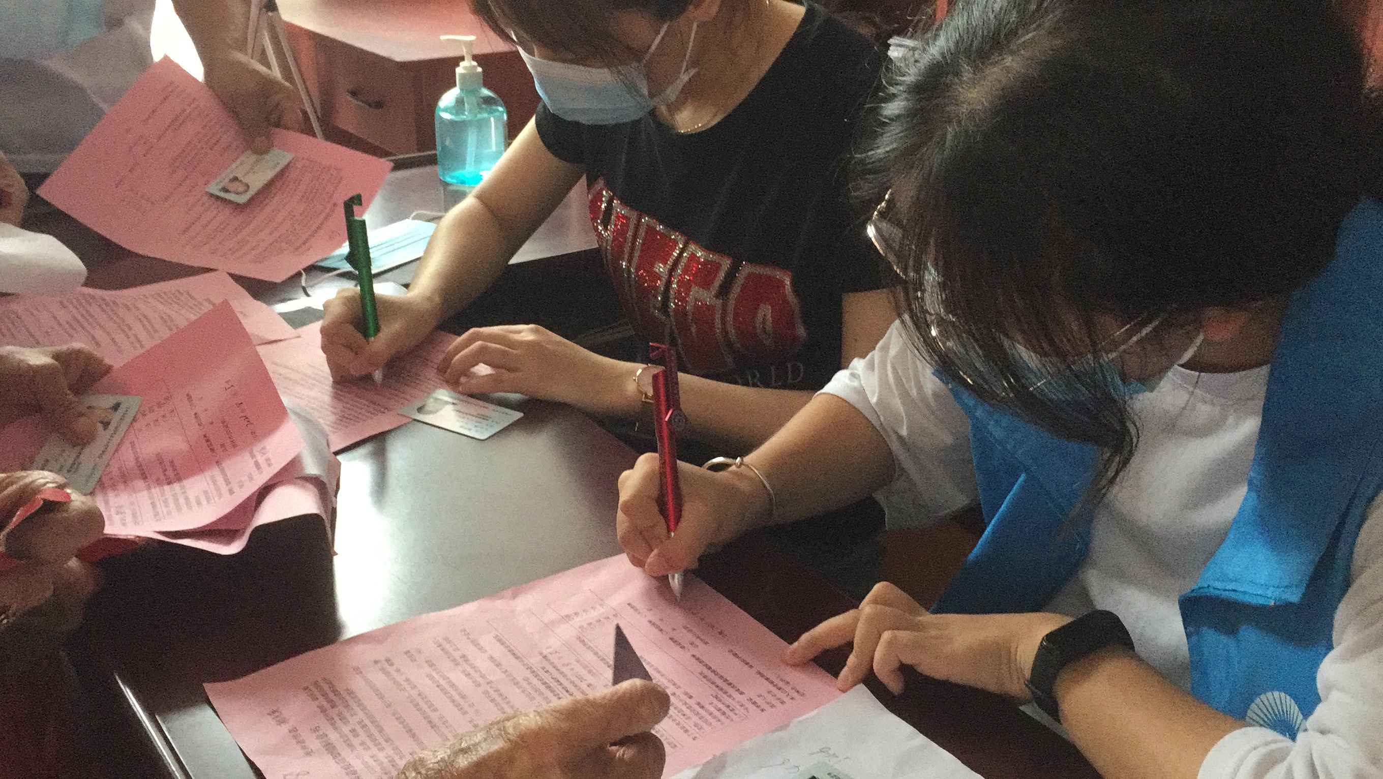 图1实践队员帮助接种疫苗的村民进行登记