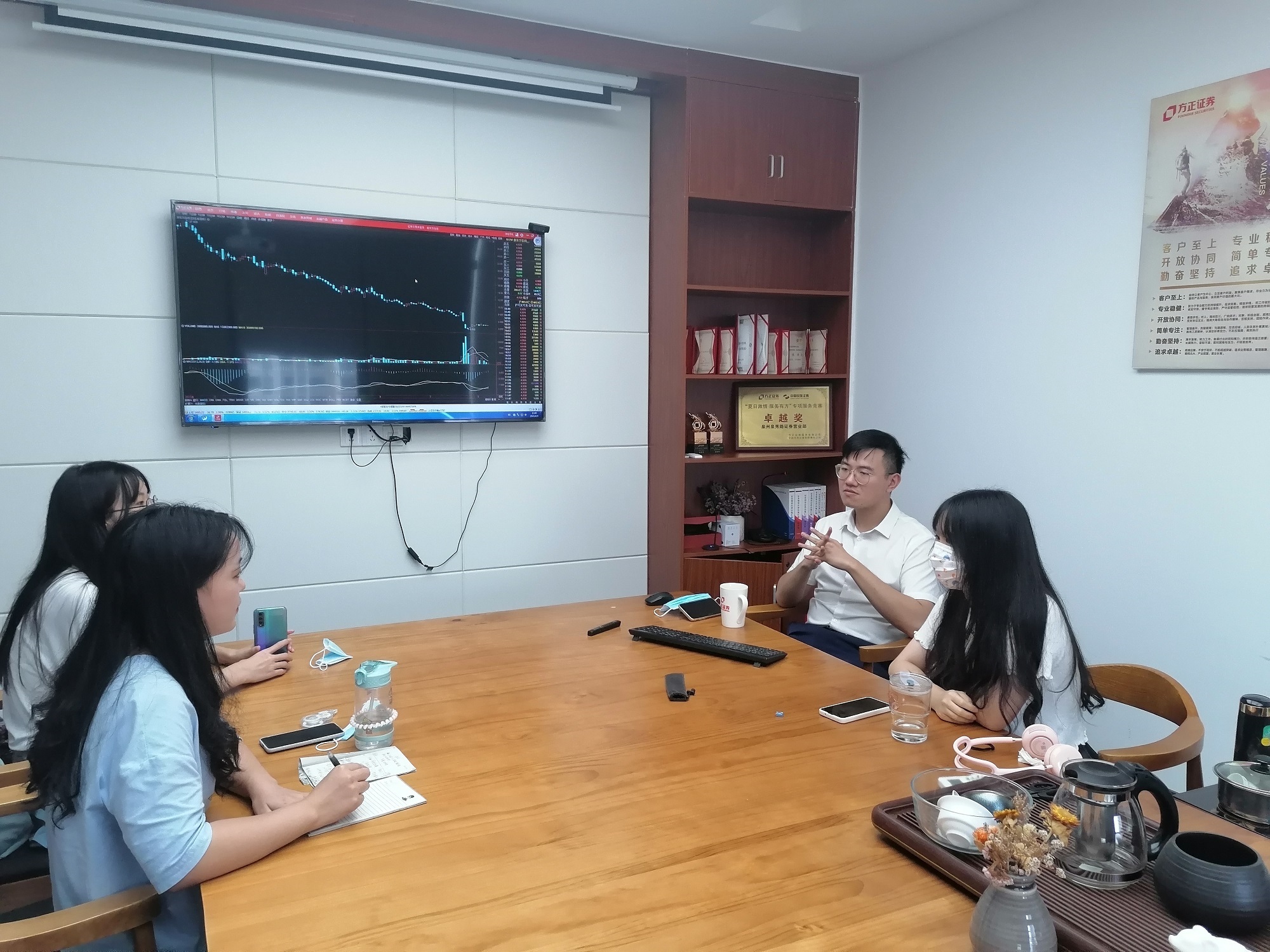 为对股票基础知识进行升华学习,2021年8月9日,yl23411集团胜券在握赴方正证券暑期实践队赴方正证券股份有限公司津淮街证券营业部开展“走近时事,分析股票”培训。