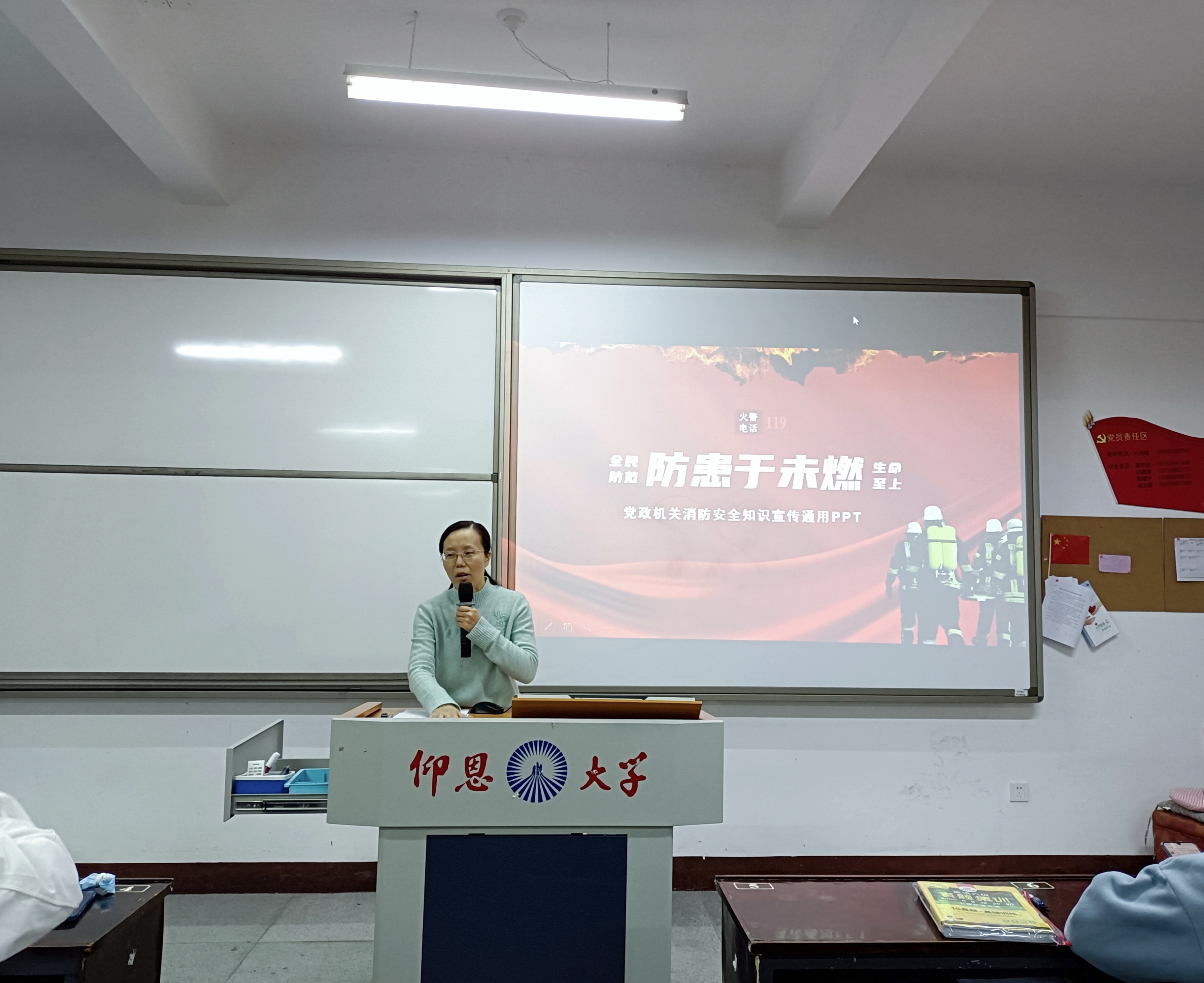 为进一步贯彻落实学校消防安全工作精神,牢固树立“安全第一,预防为主”的思想,提高学生消防安全意识,减少消防安全隐患。11月11日,21国贸(专升本)1班在仰恩楼A3-105召开了以“落实消防责任,防范安全风险”为主题的班会活动。本次会议参加人员有班主任刘红艳老师、21国贸(专升本)1班全体同学。此次主题会议由班主任刘红艳老师主持。