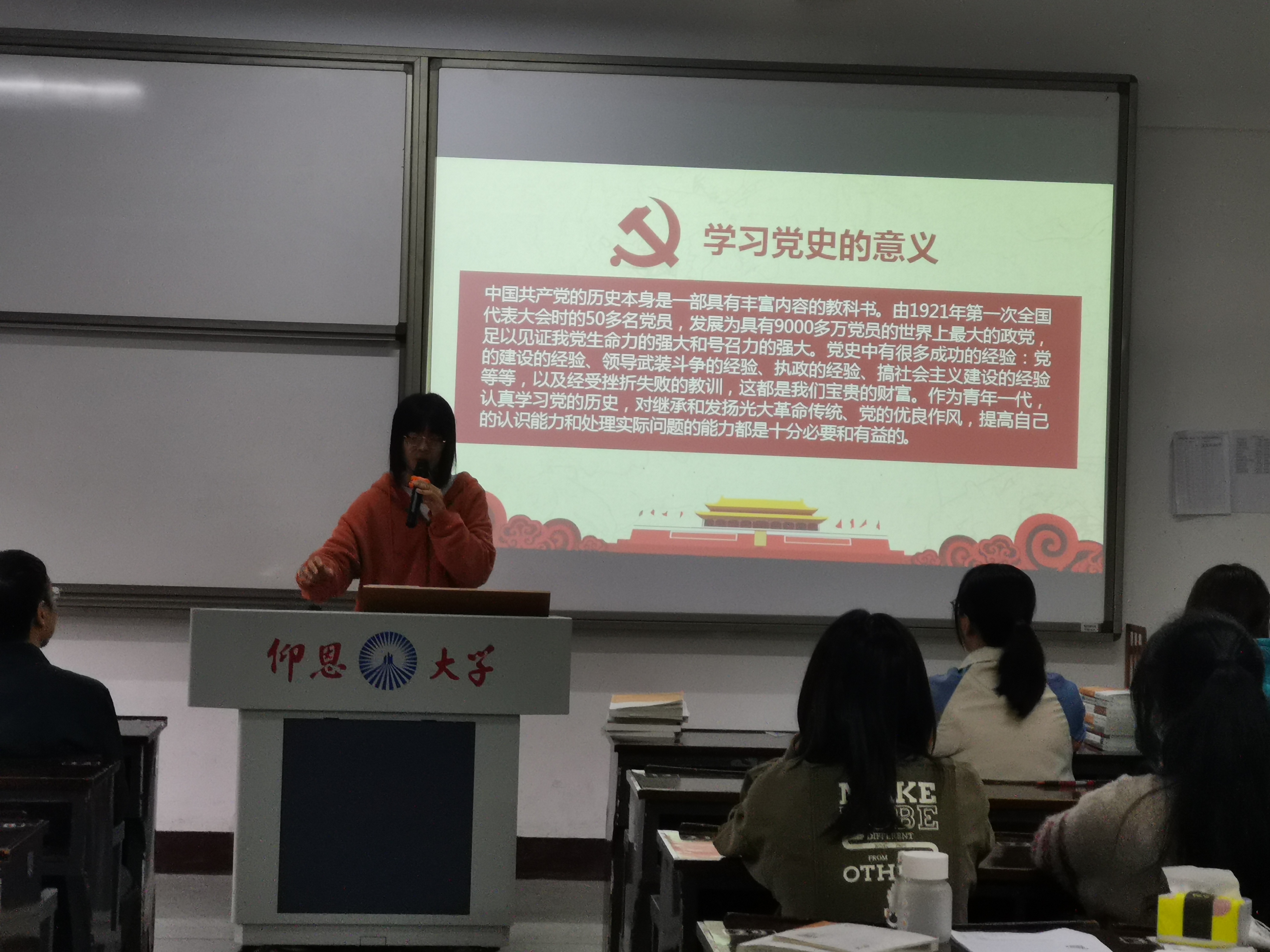 图2 支部全体成员在认真听讲 会议尾声,支部副书记姚姝然老师对本次学习会进行了总结发言,姚姝然老师表示学习党史文化对增强我们的党性修养具有十分重要的作用,每一位党员同志都应该努力学习党史文化,增强自己的党性修养,争做一名合格的中国共产党员。