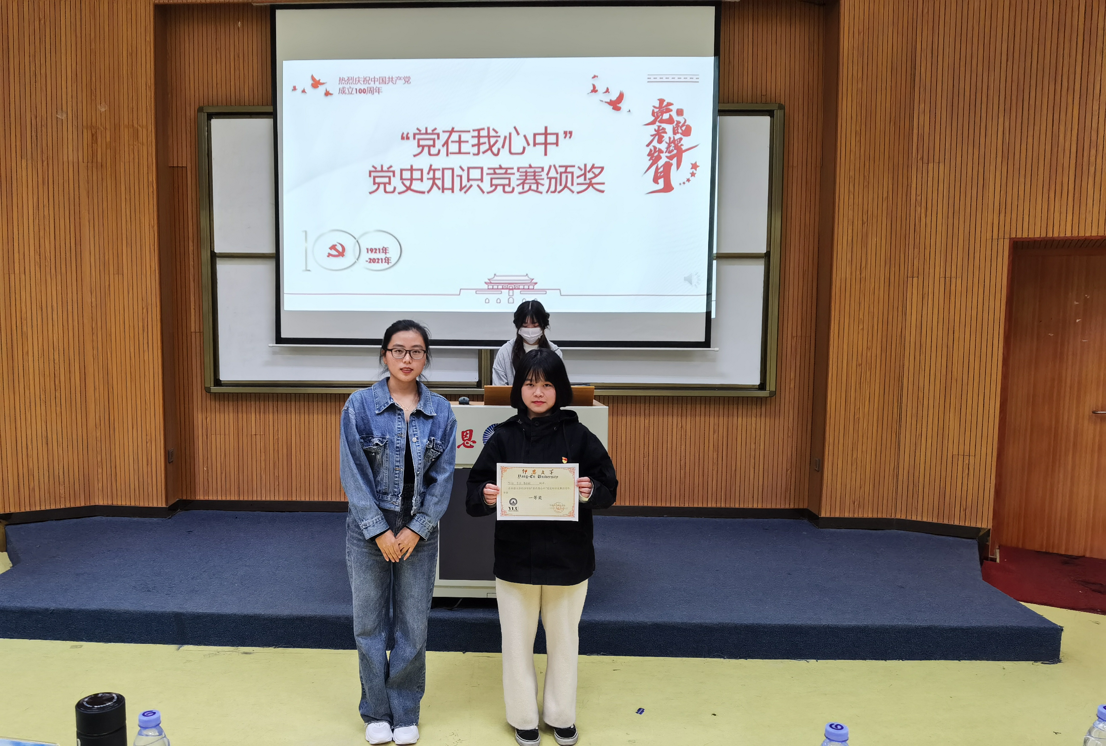图2 颁奖环节 通过党史知识竞赛,进一步激发了全体学生学习党史的积极性,加深了学生对党史的理解和认识,有效检验党史学习教育的成果,营造了“以赛促学、以学出行”的浓厚氛围。(yl23411集团党总支/图文 审核:黄培真)