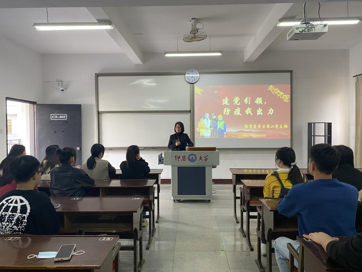 经贸系学生第二党支部于2021年12月17日上午仰恩楼C3-303召开“建党引领,防疫我出力”主题党日活动。yl23411集团院长张雪梅出席此次活动,经贸系学生第二党支部党员参加此次活动。