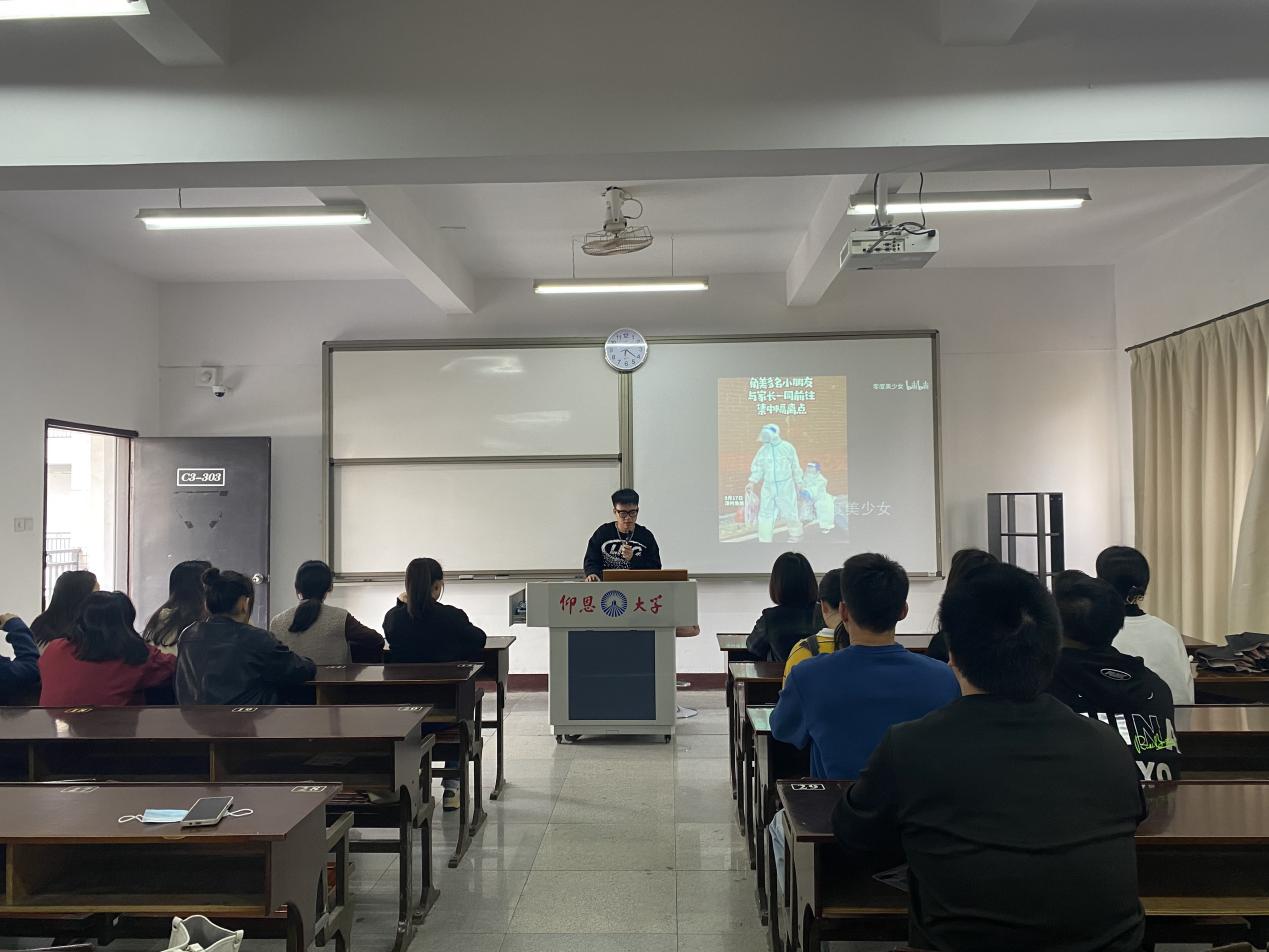 图1 宣传委员王梓谦介绍防疫相关材料