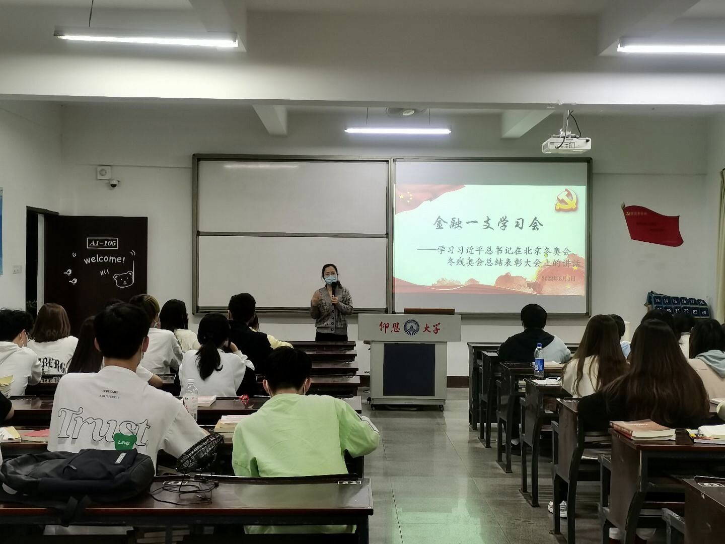 2022年5月3日晚7:30,金融系学生第一党支部组织开展学习“习近平总书记在北京冬奥会、冬残奥会总结表彰大会上的讲话”的学习会,传承弘扬北京冬奥会、冬残奥会精神。此次学习会参与人员有支部书记何丽玲老师、支部全体学生党员以及各班积极分子代表。