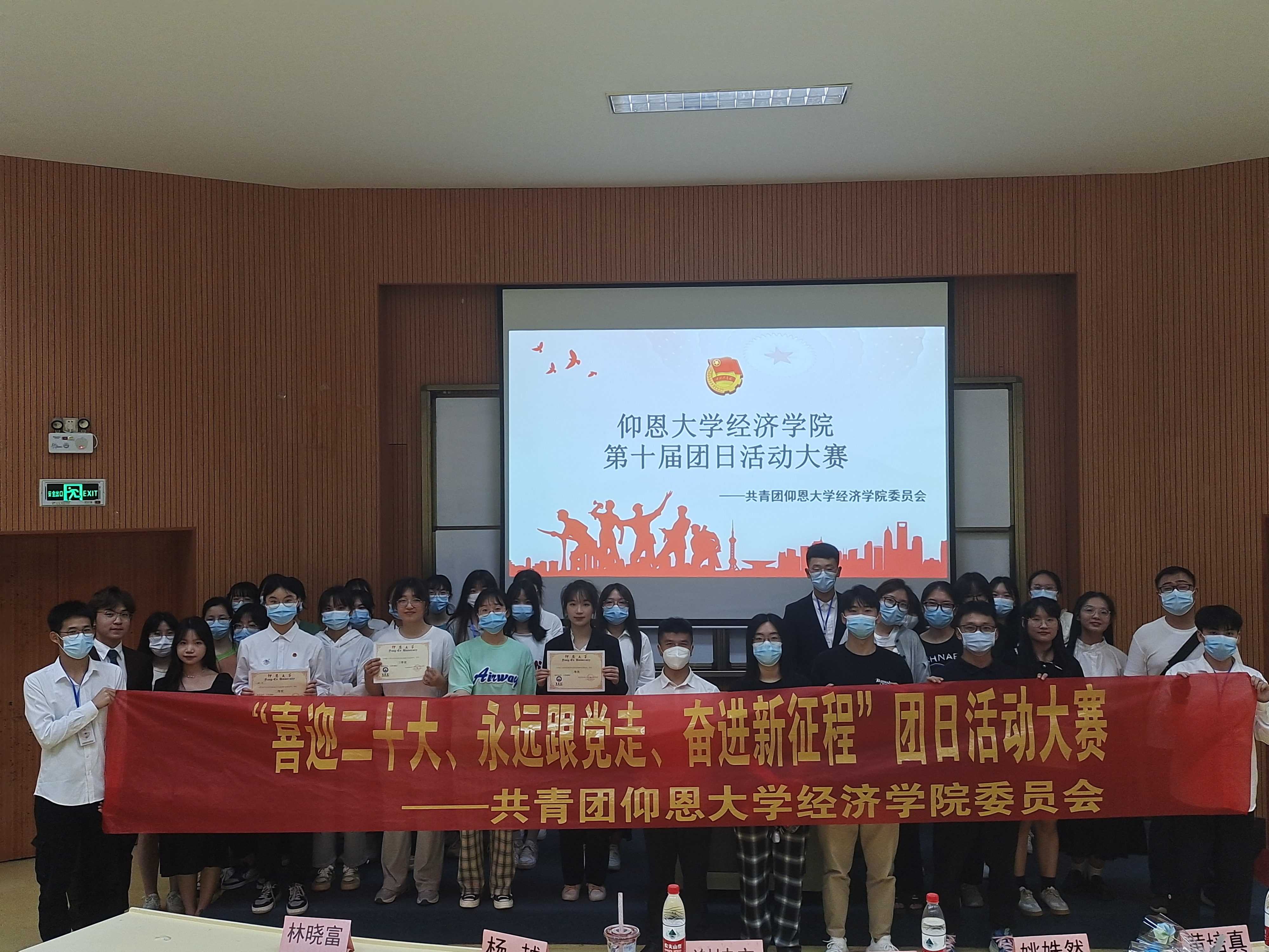 图2 获奖同学与在场老师合影 “喜迎二十大,永远跟党走,奋进新征程”,通过此次主题团日活动,yl23411集团学子在活动中重温党团百年奋斗历程,在活动中凝聚班级力量,展现出了经院学子的良好精神风貌。(yl23411集团团委/图文 审核:黄培真)