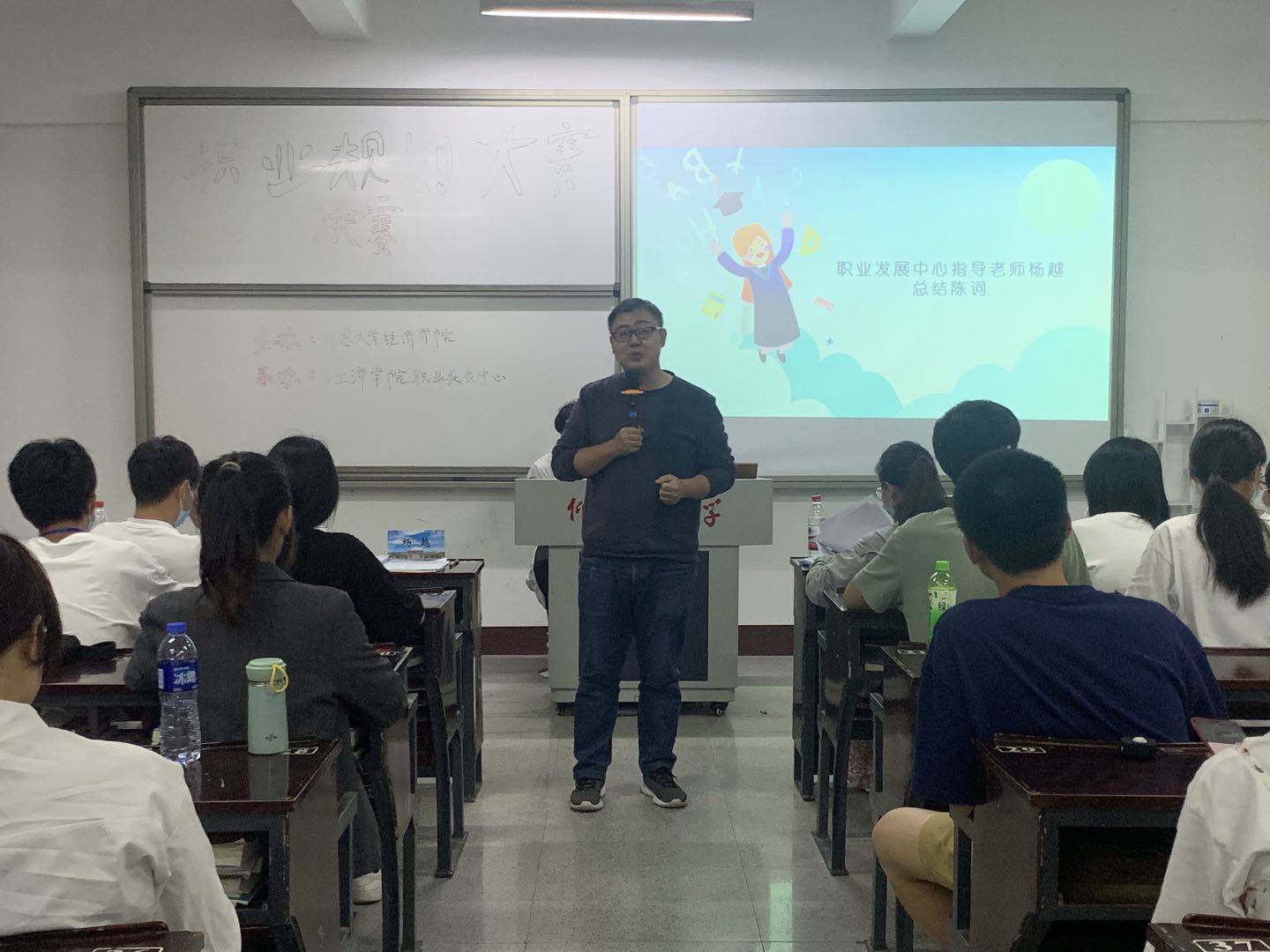 图3 杨越老师总结致词 扬帆梦想,规划职场,共筑未来。我院在此次举办的职业生涯规划大赛中,不断挖掘、培育优秀人才,注重赛前指导,有力地传播和普及了职业发展规划理念,引导同学们学会科学定位自己的发展方向,通过对自身性格、爱好、特长以及所处环境客观、全面分析,充分熟悉自我、认清环境,乐观应对社会就业形势变化,关心同学们树立职业规划意识、竞争意识和危机意识,对同学们择业、就业具有积极作用。(yl23411集团职业发展中心/图文 审核:黄培真)