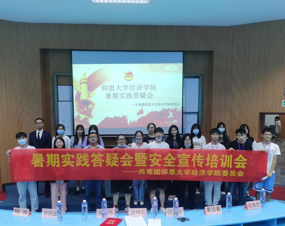 图2 与各位老师合影 本次答疑会旨在针对经院21级学子就有关暑期实践问题答疑解惑,使大家熟悉暑期实践的整个活动流程,并树立对暑期实践活动的信心。愿经院学子在八闽大地上奉献出自己的青春力量,展现出属于经院学子的青春色彩。(yl23411集团团委/图文 审核:黄培真)