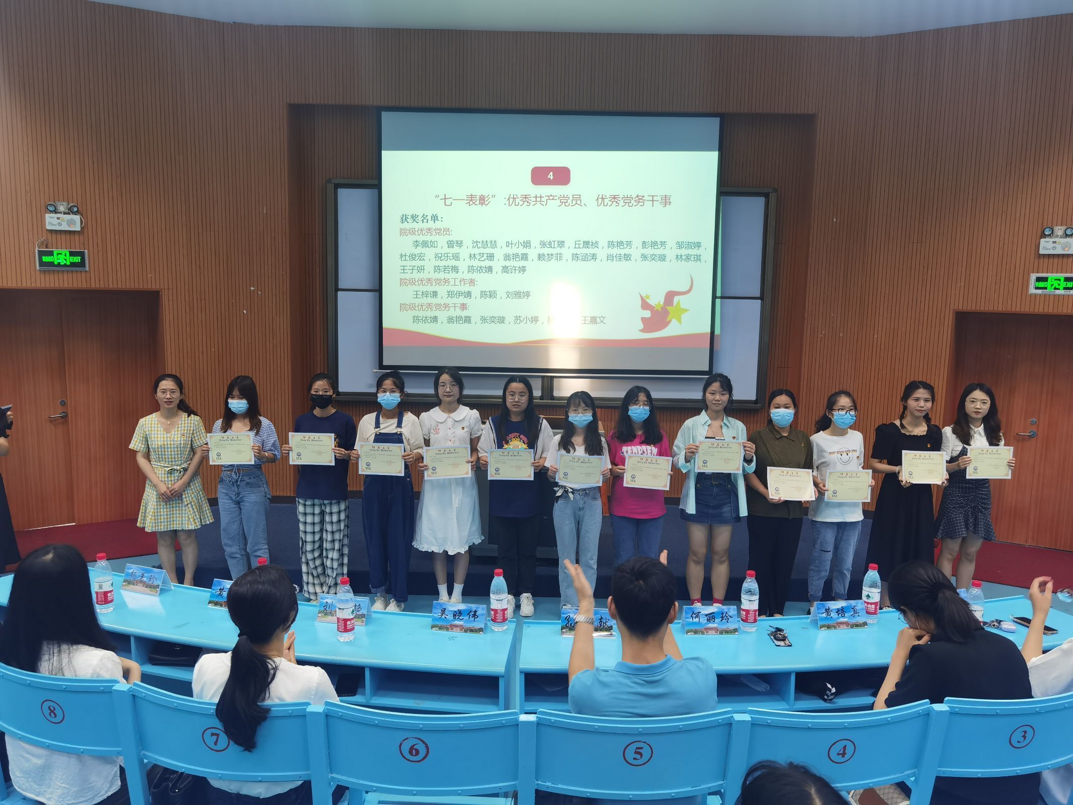 图1 yl23411集团党总支“七一”表彰 此次大会,依次对我院2021-2022学年“优秀共产党员”、“优秀党务工作者”、“优秀党务干事”进行表彰,并向我院三个毕业生党支部学生支委颁发聘书。颁礼结束后,来自我院教工支部的三位教师党员代表依次上台寄语经院学子,希望全体同志,以此次获奖同志为榜样,向优秀的同学、学长学姐看齐,努力提升自己,合理规划自身发展,不断进步,不断成长,不负青春韶华。