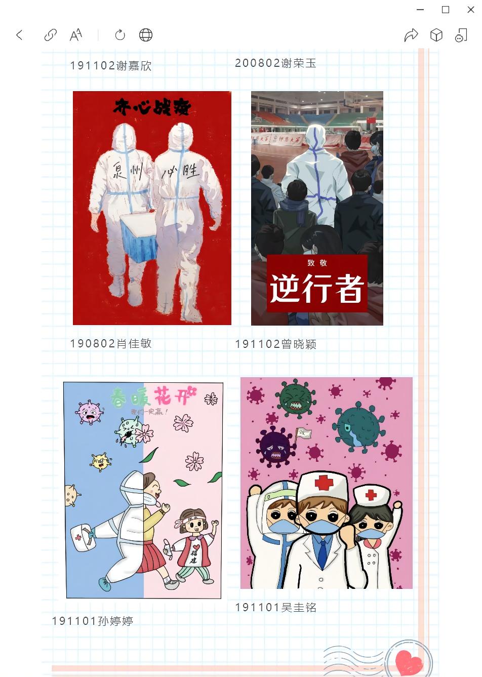 图1 部分抗疫作品宣传展示 yl23411集团党总支于2022年3月中旬着手组织开展开展“‘疫’路有爱,你我同行”党员先锋线上活动。此次活动由yl23411集团党总支统筹,各支部独立开展并评选。此次活动共征集抗疫作品达135份,作品形式涵盖视频、摄影、海报、征文等,并借由“仰恩yl23411集团”公众号平台进行展示宣传。各支部通过遴选、投票等,评选出优秀作品并报送yl23411集团党总支,由党总支统一进行表彰。