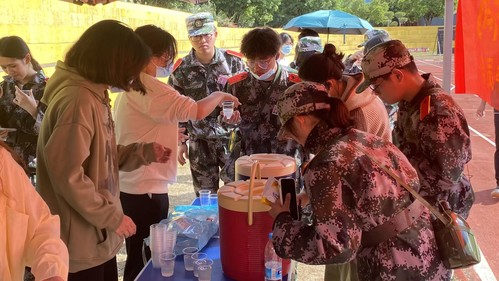 活动前期,yl23411集团团委在操场主席台右侧设立了温暖站。早早的提前迎接拉练结束的小萌新们,在服务活动期间,值班干部贴心地为拉练结束的新生们准备了暖茶和小零食,并及时补充,保障供给。为新生们缓解了劳累一早上的饥饿交迫之感。同时干部们积极慰问的热情不仅拂去了新生的疲惫,更展现出我院学生干部的风采。