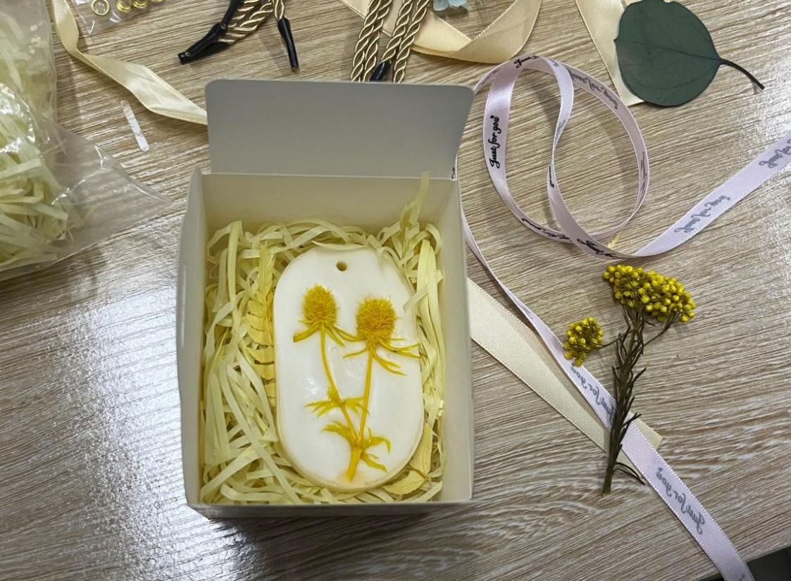 活动开始,负责人介绍了本次手作香氛活动的意义和流程,重点讲解了制作的注意事项。接着,各组同学跟着老师认真学习制作香氛,发挥自己的独特创意,以各类干花、松果等素材入手,加入自己的巧思妙想,创造出独属自己的美妙香氛作品。大家DIY属于自己的香氛蜡片,感受着手作香氛工艺的魅力。整个活动室充满着欢声笑语,空气里弥漫着芬芳,那是春天的活力与青春的朝气。
