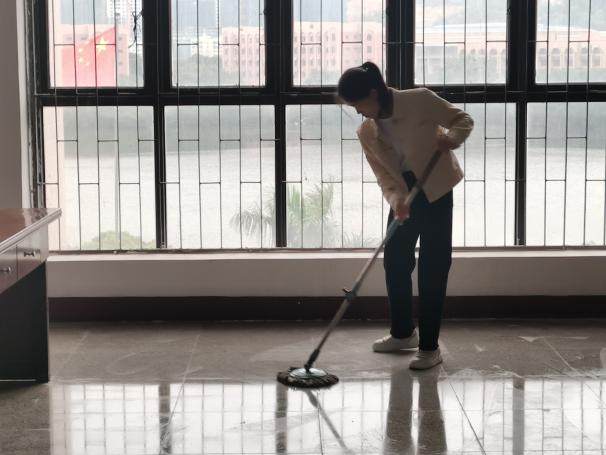 深入了解、体验爱国卫生运动精神内涵。首先,支部干事李荣美向大家介绍了本次活动的内容,并组织安排分配工作。紧接着,成员们携带清洁工具有条不紊地对会议室、活动室的桌椅物品进行擦拭、打扫。经过全体成员半个小时的高效劳作,会议室及活动室转眼焕然一新。经支部干事验收,确定现场无垃圾残留后,全体成员进行合影,记录下意义深远的时刻。