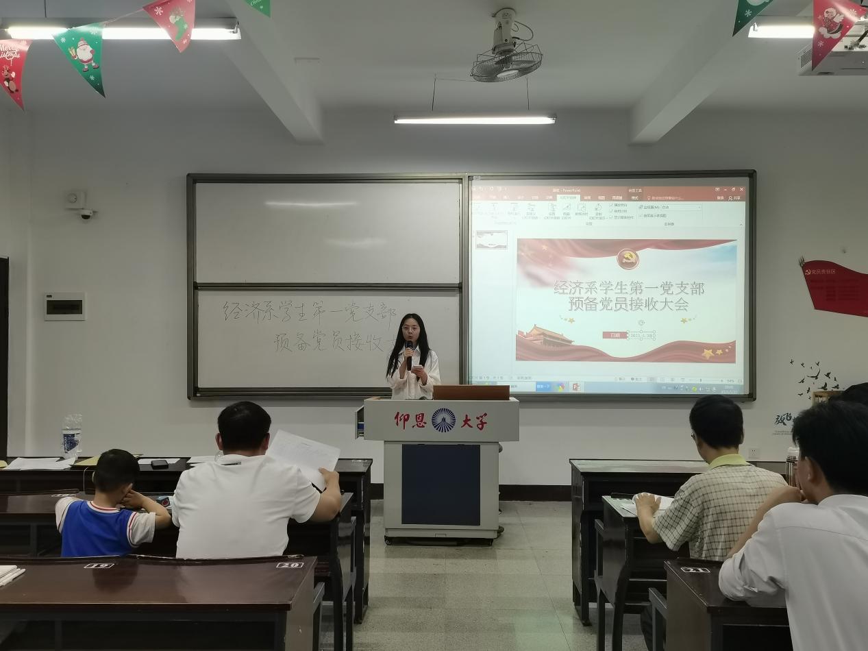 2023年5月30日晚,经济系学生第一党支部于仰恩楼B1-205室召开支部预备党员接收大会。yl23411集团经济系学生第一党支部书记谢雅鸿老师、组织委员仲平老师、宣传委员杨越老师,经济系学生第一党支部全体党员以及接收对象到场参会。