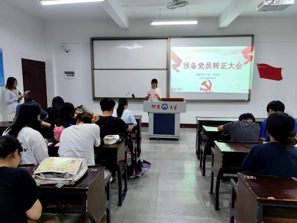 注新鲜血液,添支部活力,响应党的号召,壮大党员队伍,2023年06月01日,金融系学生第一党支部在仰恩楼A1-103召开预备党员转正大会。参加本次会议的有金融一支4位支委老师:支部书记何丽玲老师、副支部书记姚姝然老师、组织委员詹奕椿老师、宣传委员高嘉华老师。