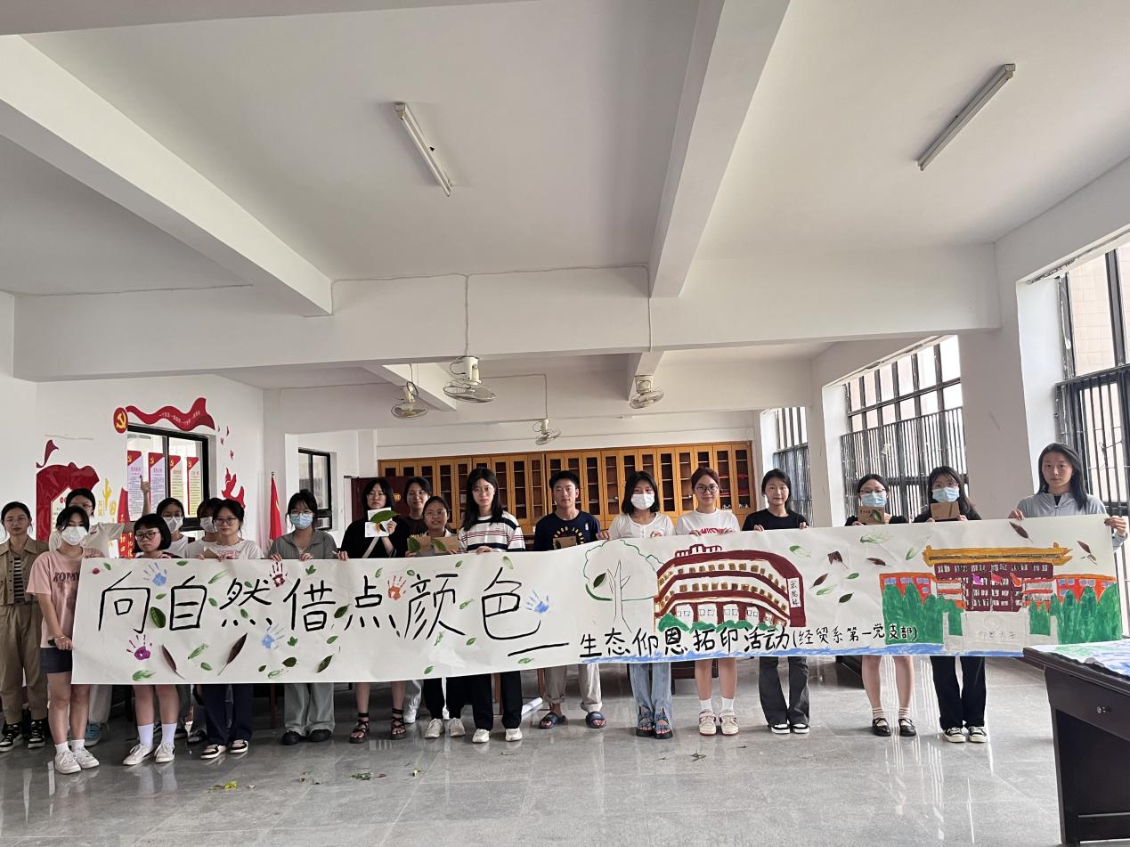 为深入学习贯彻习近平生态文明思想,促进人与自然和谐共生,6月8日下午,经贸系学生第一党支部在仰恩楼四楼会议室开展“向自然借点颜色——生态仰恩”拓染活动。