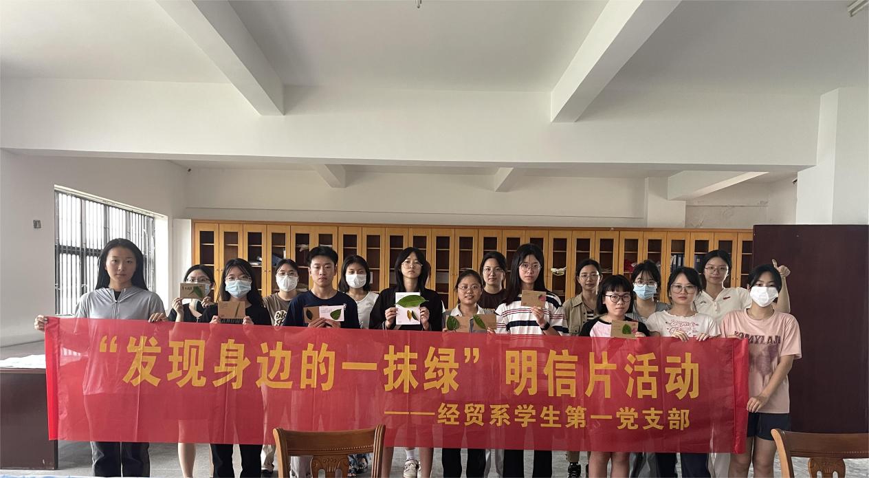 为了全面贯彻习近平总书记提出的新发展理念,努力实现人与自然和谐共生,经贸系学生第一党支部于2023年4月20日下午在仰恩楼四楼活动室开展“发现身边的一抹‘绿’”主题明信片活动。