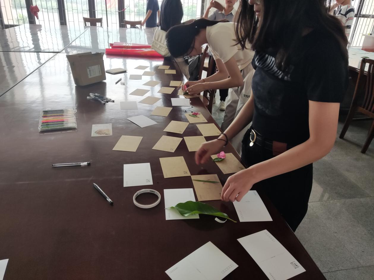 在本次活动开展前,参加活动的党员、积极分子通过留意身边的“绿”,拾捡树叶、花瓣等大自然馈赠的礼物来收集素材。活动开始时,大家迫不及待地使用准备好的树叶和花瓣,发挥自己的奇思妙想,对明信片进行DIY装饰。经过一小时的创作时间,一张张富有生机、别具匠心的明信片出现在大家的眼前。同学们纷纷表示,在将身边的绿色生命与明信片相结合的过程中,充分感受到了大自然的魔力,发现了人与自然和谐共生的奥妙。