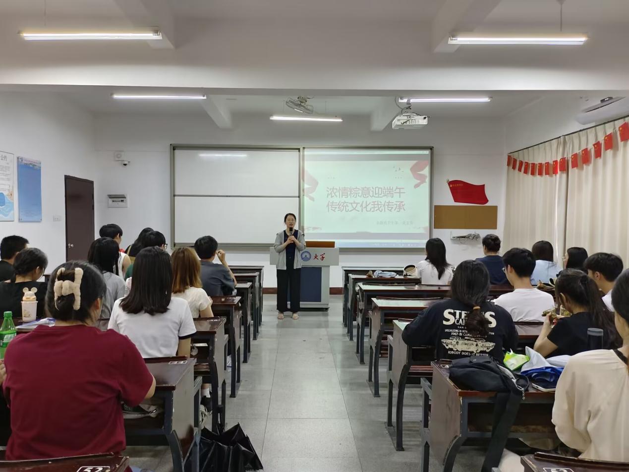 活动伊始,由支部干事介绍了端午节,讲述了端午节的起源、习俗以及端午别名等,让同学们感受到端午节的文化内涵和传统佳节的独特魅力。接着,播放了回忆端午的短片,同学们一起回顾屈原和伍子胥的爱国故事,陶冶了同学们的情操,又进一步激发了同学们的爱国热情。最后,支部给现场的同学们都发放了端午福利——粽子,何丽玲老师对本次迎端午活动进行总结发言,希望同学们将文化传承融入民俗节日中,做弘扬中国传统文化的使者,让优良的民族文化传统在现代生活中得以延续,并祝愿全体同学们端午节安康!