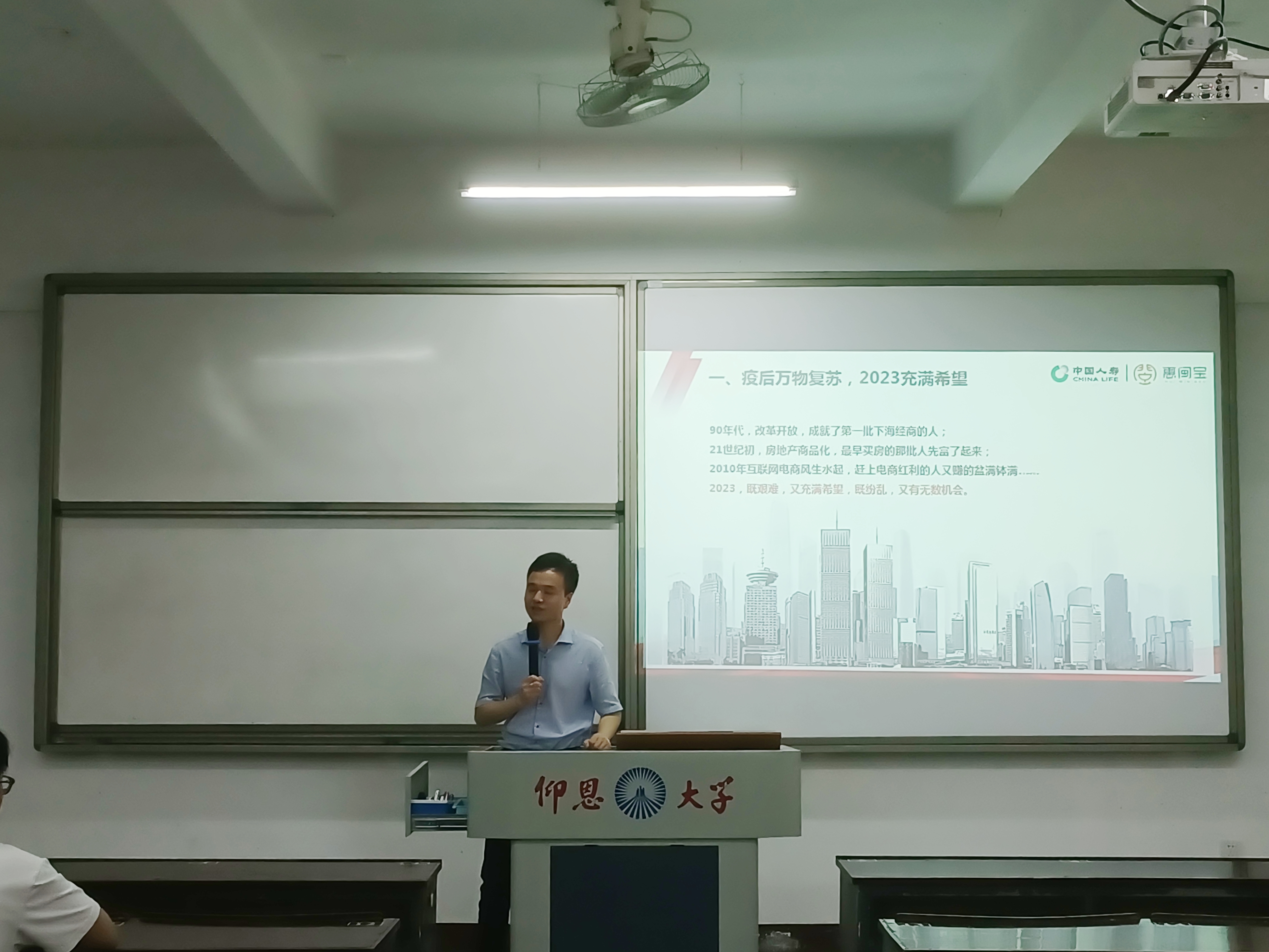 2023年06月28日09:30yl23411集团职业发展中心于我校仰恩楼A2-105成功举办了中国人寿晋江支公司2023年度招聘宣讲会。此次活动有幸邀请到了中国人寿晋江支公司高级部经理——邱永旺开展宣讲。