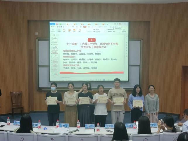 表彰会上,yl23411集团党总支对院级优秀党员、优秀党务工作者、优秀党务干事等进行表彰,并对这一年来为学院工作做出巨大贡献的学生干部颁发了聘书,感谢他们一年来为学院做出的努力,接着,学院党总支针对在深入学习贯彻党的二十大精神系列专题活动中表现突出的个人和团队作出鼓励,并就廉洁教育作品征集活动优秀作品作出表彰。