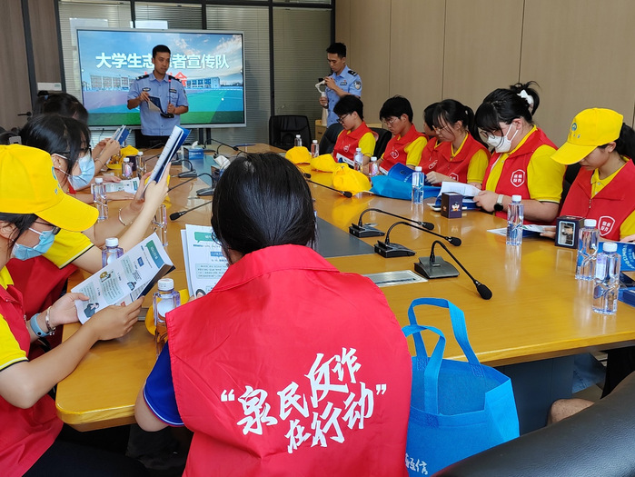“在当前的防控形势下,泉州市一年仍被骗走大约3亿元。”在宣传培训会上,白警官更加详细介绍了他们的工作,通过视频向实践队展示了骗子的各种手段和反诈警员的工作日常,使实践队更好的学习到反诈知识,深入了解反诈手段,为之后的反诈宣传做准备。培训会结束后,队员们和警官展开激烈交流,明晰当前反诈形势,讨论宣传工作细节,分享会上心得。