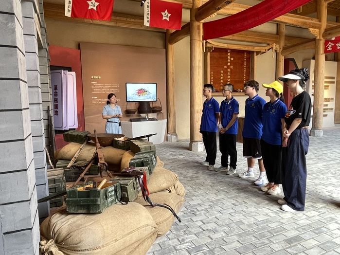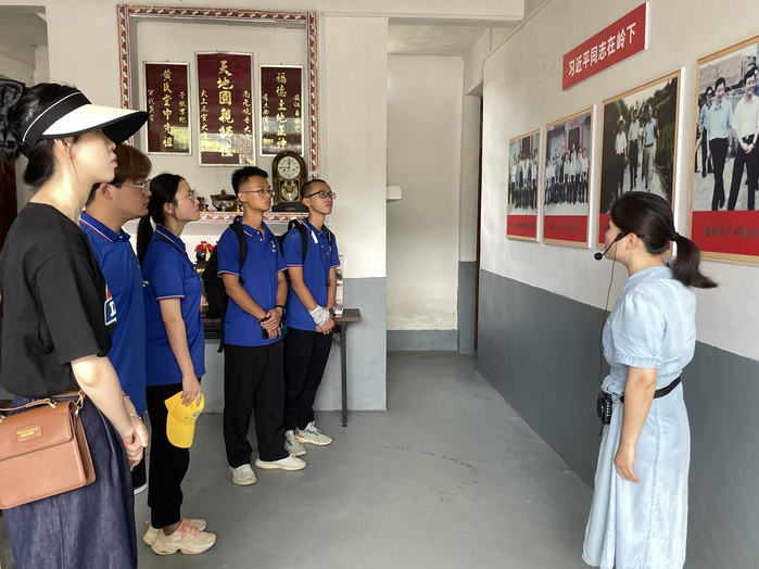 图2 讲解员带实践队员了解新桥乡岭下村的红色战史