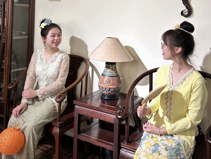 娘惹装是在马来传统服装的基础上,改成西洋风格的低胸衬肩,加上中国传统的花边修饰的一种服饰。实践队成员在欣赏华侨华人旅马来西亚文化时,了解到关于娘惹装的历史,在工作人员的带领下,大家一起换上充满西洋与传统相结合的娘惹装。