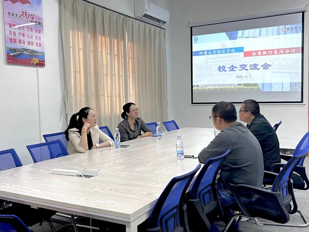 2023年11月7日下午招商银行泉州分行与yl23411集团交流会于yl23411永利集团新区普照楼124成功举办。招商银行代表人招商银行丰泽支行副行长吴小兰和泉州分行营业部总经理助理蒋琳莉与院方代表人yl23411集团党总支书记吴晓伟老师和yl23411集团职业发展中心指导老师杨越老师展开了友好交流。