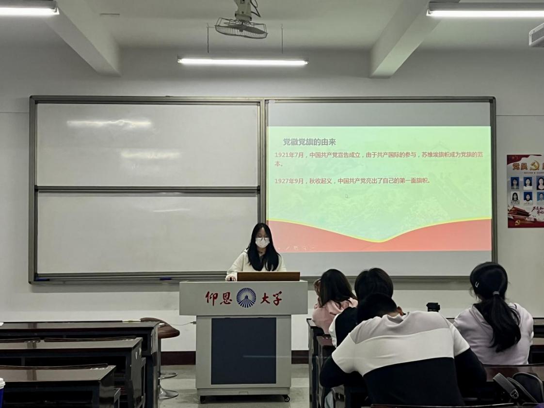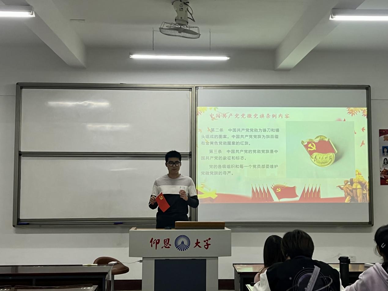 为了深入了解党徽党旗知识,进一步规范党徽党旗的使用,2023年11月13日下午16:00,金融系学生第一党支部在仰恩楼C1-303组织开展《中国共产党党徽党旗条例》主题学习会。支部书记何丽玲老师、金融系各班积极分子和支部全体党员参加了此次学习会。本次学习会由各班积极分子代表通过PPT、视频等多种形式,进行《中国共产党党徽党旗条例》学习分享,带领现场的同学一起学习。