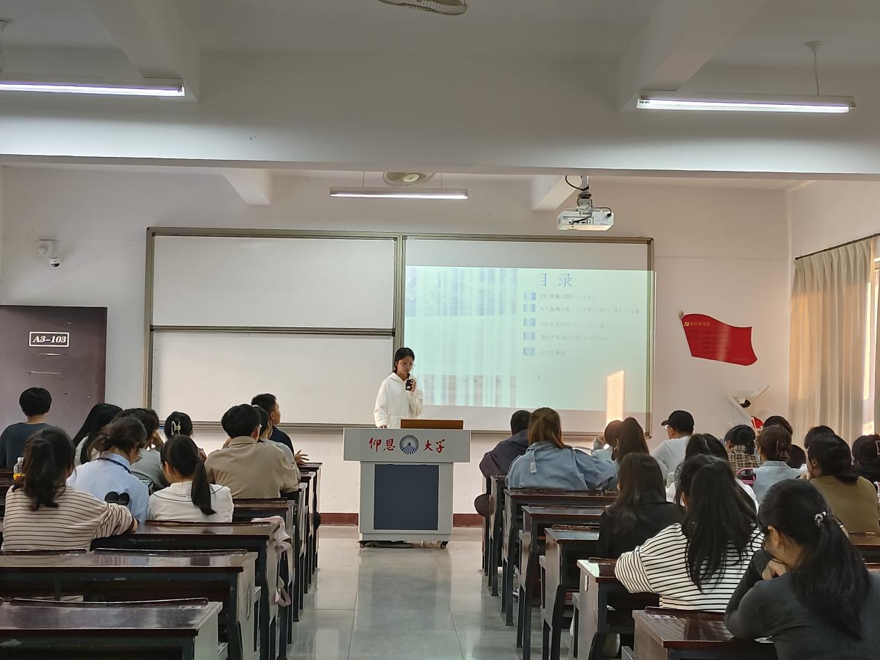 为紧密联系学习贯彻党的二十大精神,结合正在开展的主题教育,坚持不懈用习近平新时代中国特色社会主义思想凝心铸魂,更加自觉投身建设人与自然和谐共生现代化的伟大实践中,2023年11月23日,经贸系学生第一党支部在仰恩楼A3-103举办了关于“学习共建人与自然生命共同体的中国方案”主题学习会,参加此次活动的有支部书记黄培真,及经贸系学生第一党支部全体党员和积极分子。