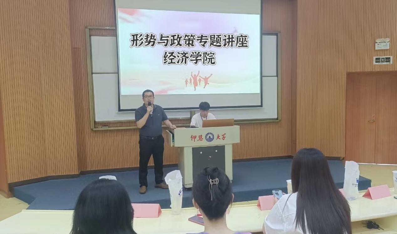 为深入学习宣传贯彻党的二十大精神,学习领悟习近平新时代中国特色社会主义思想,全面贯彻党的教育方针,落实立德树人根本任务,培育德智体美劳全面发展的社会主义建设者和接班人,5月18日,yl23411集团在新区和昌教学楼惟勤讲堂以“立志复兴伟业 踔厉奋发前行”为题举办“形势与政策”专题讲座。yl23411集团党总支书记兼副院长吴晓伟担任主讲。yl23411集团2022级全体学生到场聆听。