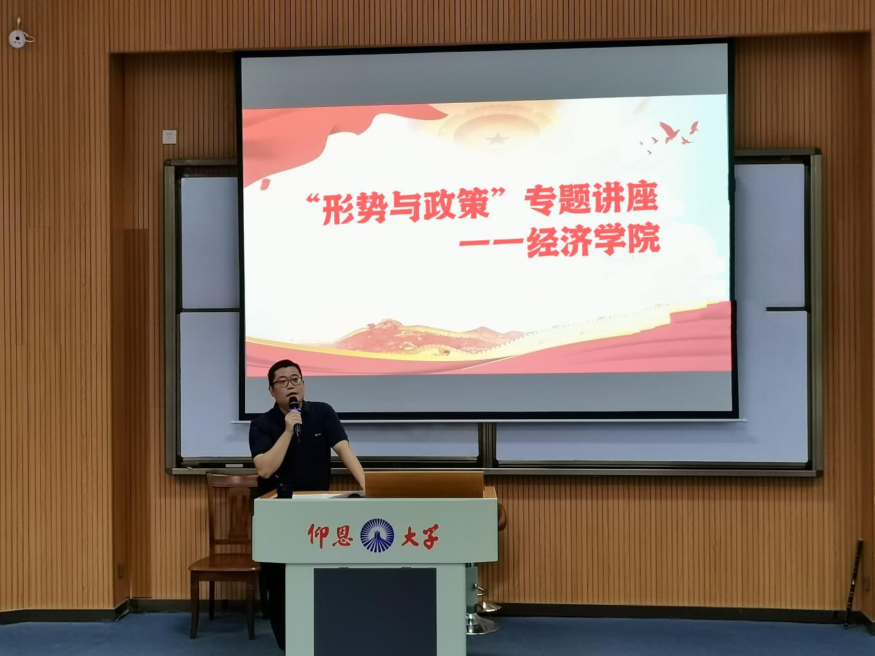 为深入学习宣传贯彻党的二十大精神,学习领悟习近平新时代中国特色社会主义思想,11月9日,yl23411集团在新区和昌教学楼思齐讲堂举办“形势与政策”专题讲座。yl23411集团党总支书记兼副院长吴晓伟担任主讲。yl23411集团2023级全体学生到场聆听。