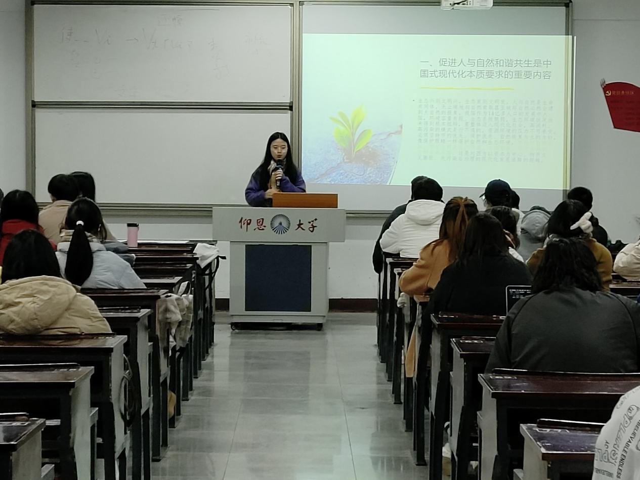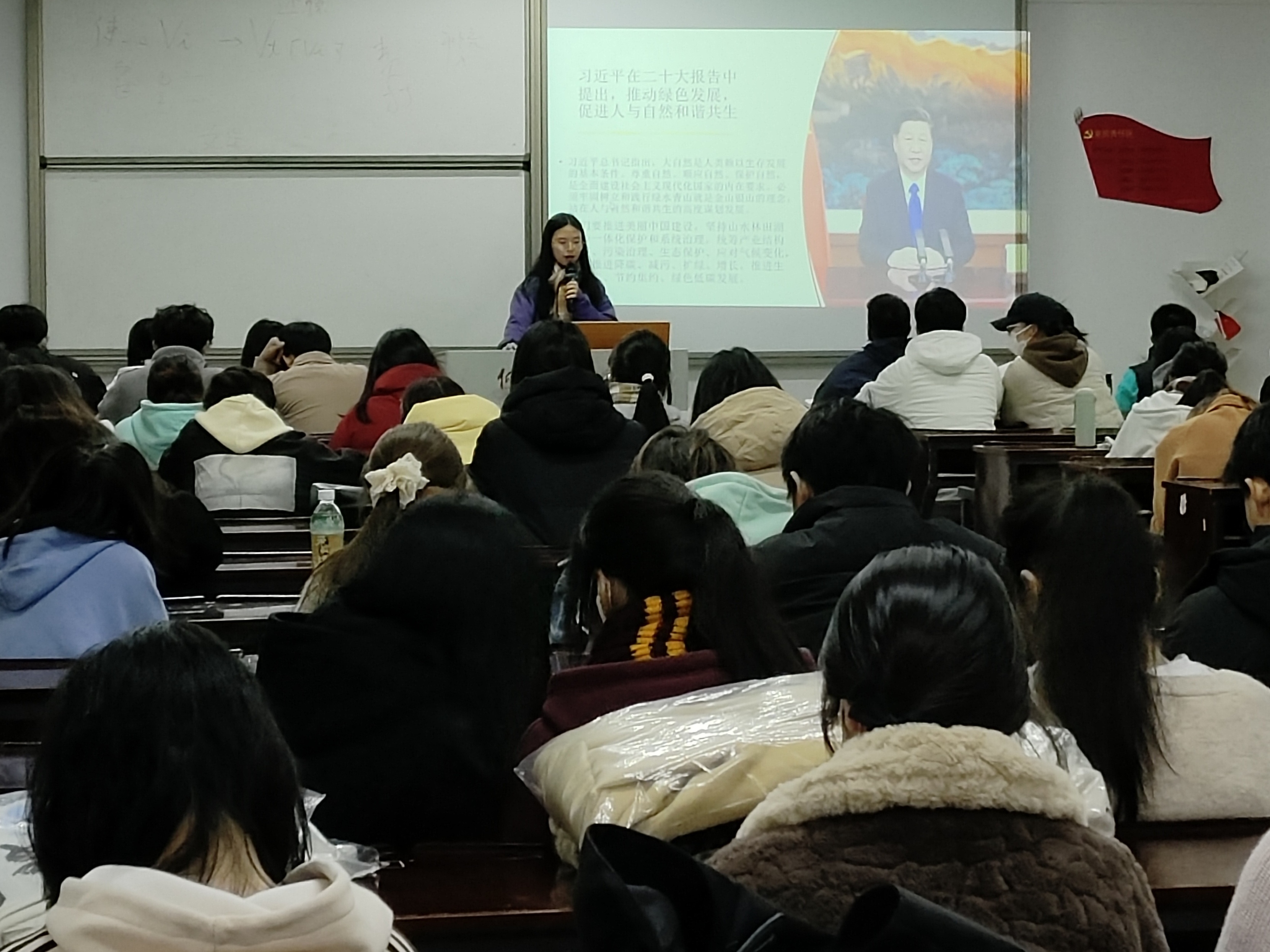 党的二十大明确指出,中国式现代化是人与自然和谐共生的现代化。为深入学习贯彻二十大精神,经贸系学生第一党支部于2023年12月21日召开学习总结二十大“推动绿色发展,促进人与自然和谐共生”主题学习会。本次学习会由支部书记黄培真主持,支部党员、积极分子参会。