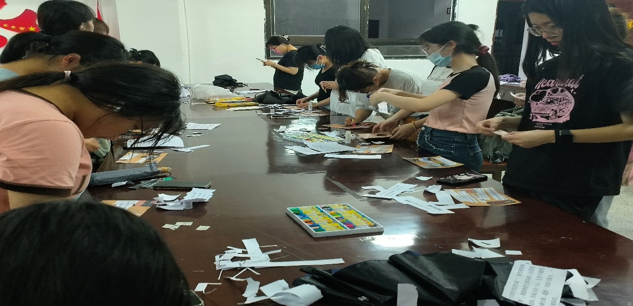 4月22日晚上7:00,经贸系学生第一党支部于仰恩楼四楼活动室组织开展”指尖微世界,邂逅趣时光”拼诗贴画主题党日活动。